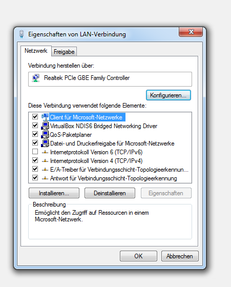 Der Haken bei "Internet Protokoll Version 6" ist raus.
