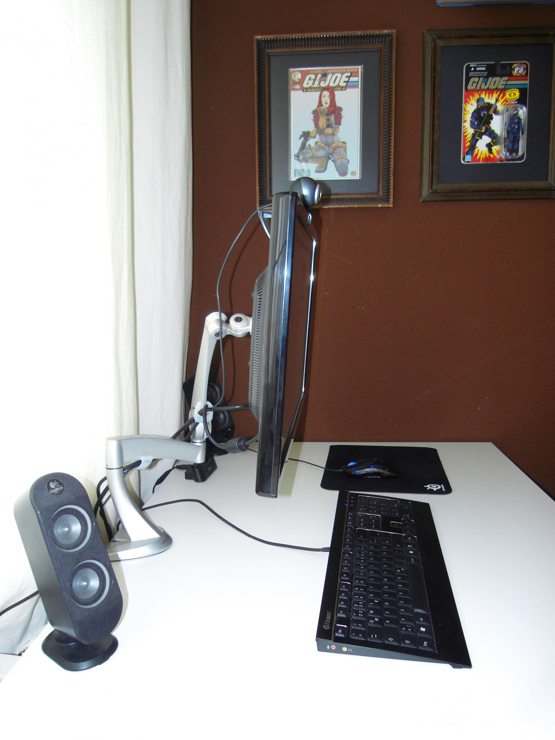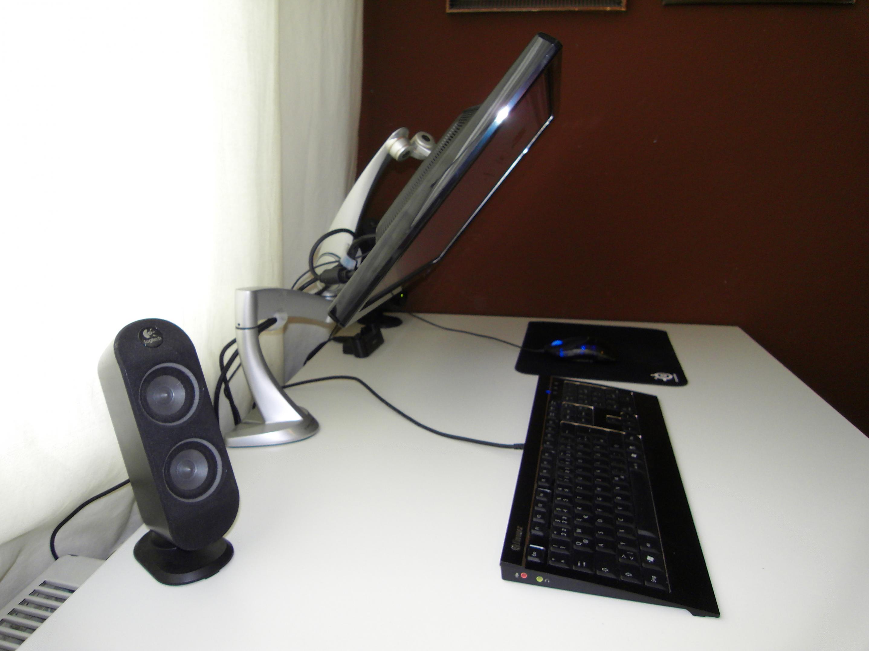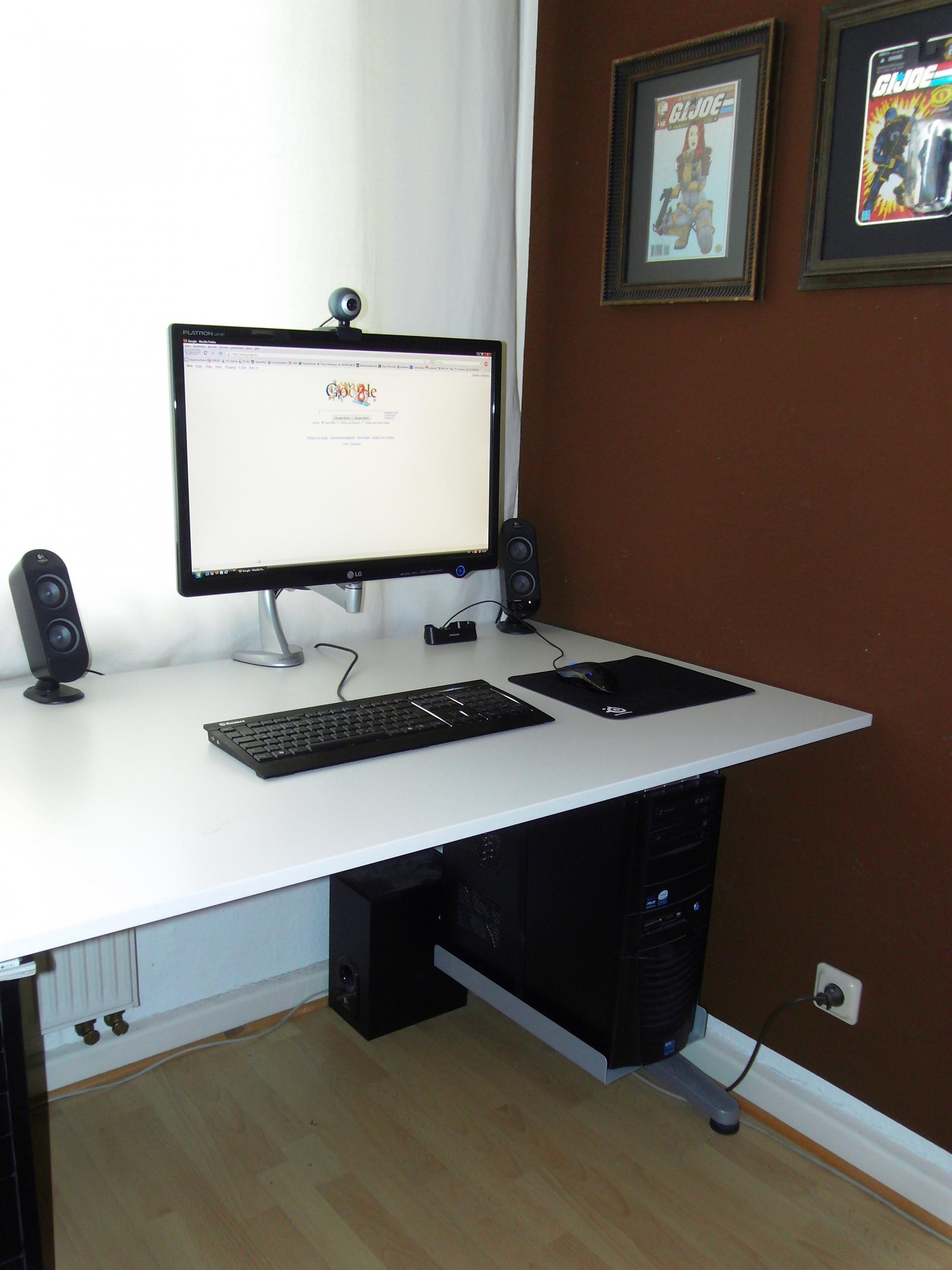 Ab und zu schau ich auch mal vom Bett aus mit Headset Folgen oder Filme am TFT, da musste ich dann immer Lautsprecher und die USB Laufwerke vom Tisch runter auf den Boden stellen um den TFT in Position bringen zu können.