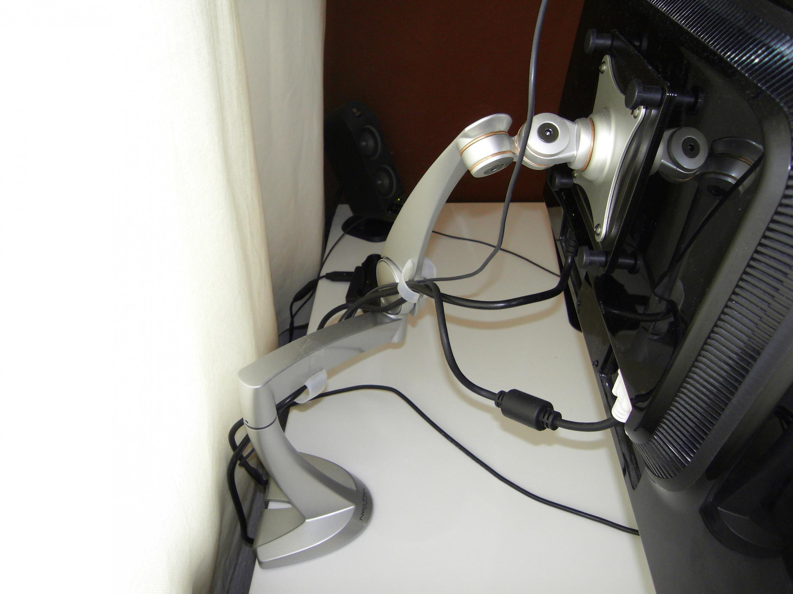 Womit ich nicht gerechnet habe ist die Verkabelung, ich brauche ein längeres Strom, VGA und DVI Kabel! Die zusätzliche Länge von dem Arm muss das Kabel ja auch mitmachen ohne irgendwo rauszureissen (bevorzugt aus dem Kabel-Kanal)...