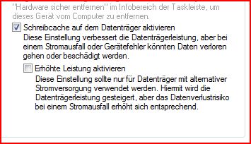 Eigenschaften des Datenträgers -> Hardware -> Richtlinien