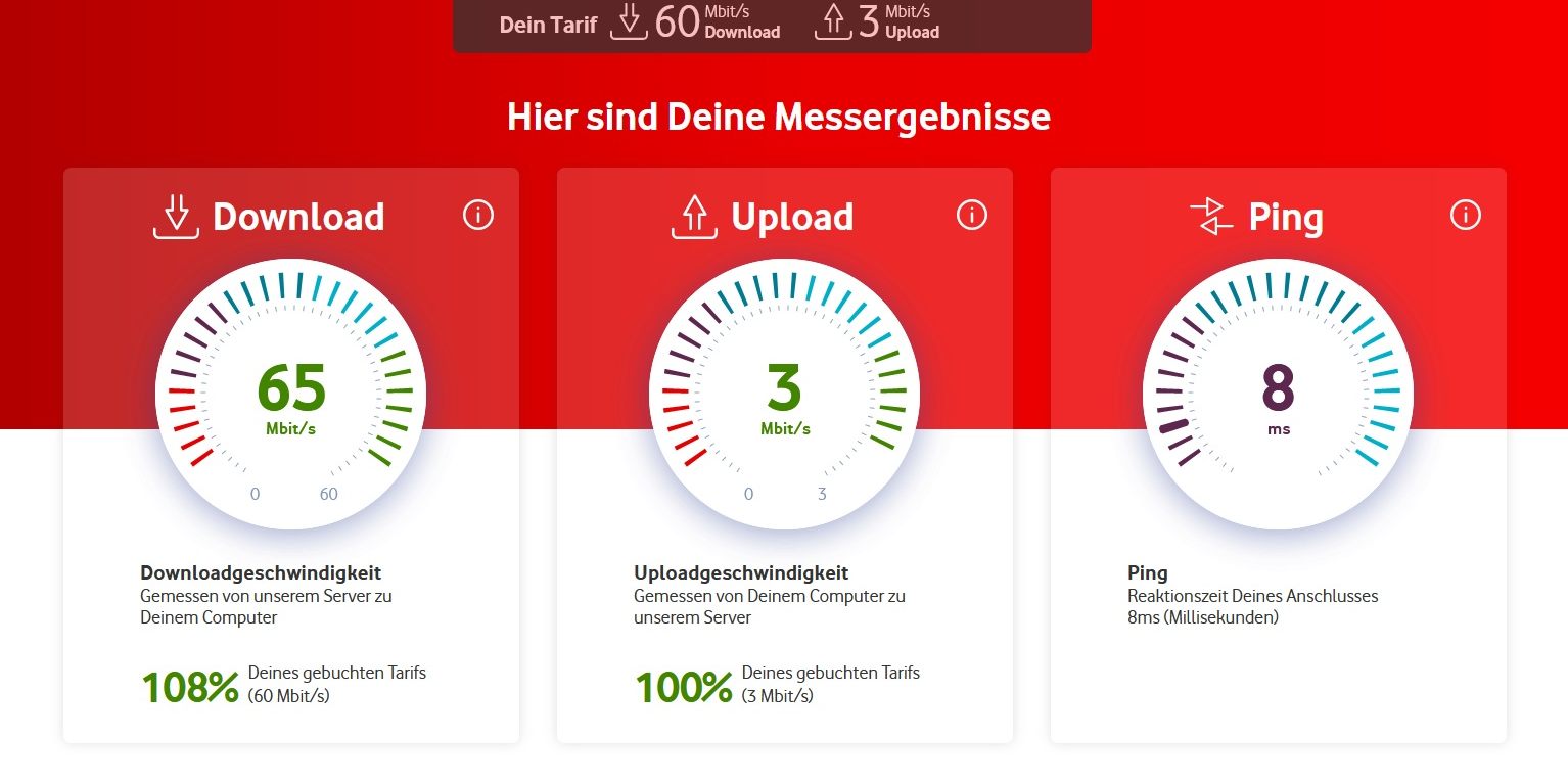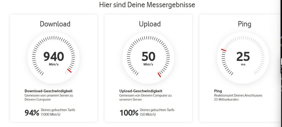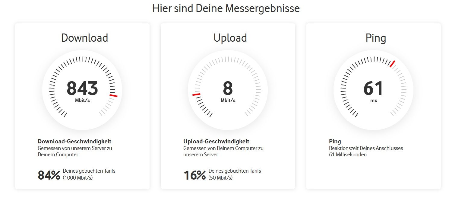 Seit ich meinen Glasfaseranschluss von einem regionalen Anbieter habe, gab es seit dem Tage der Schaltung bis heute keine Probleme und die Leitung kommt voll an.