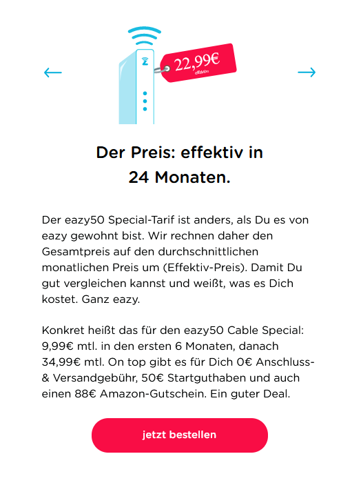 Hab jetzt ein Angebot von 29,99 für eine 100er Leitung vorliegen, von Vodafone. Bin gerade noch am überlegen..DLMttH schrieb:Und was ist mit dem eazy 40? Der reicht auch für Streaming in 4K...