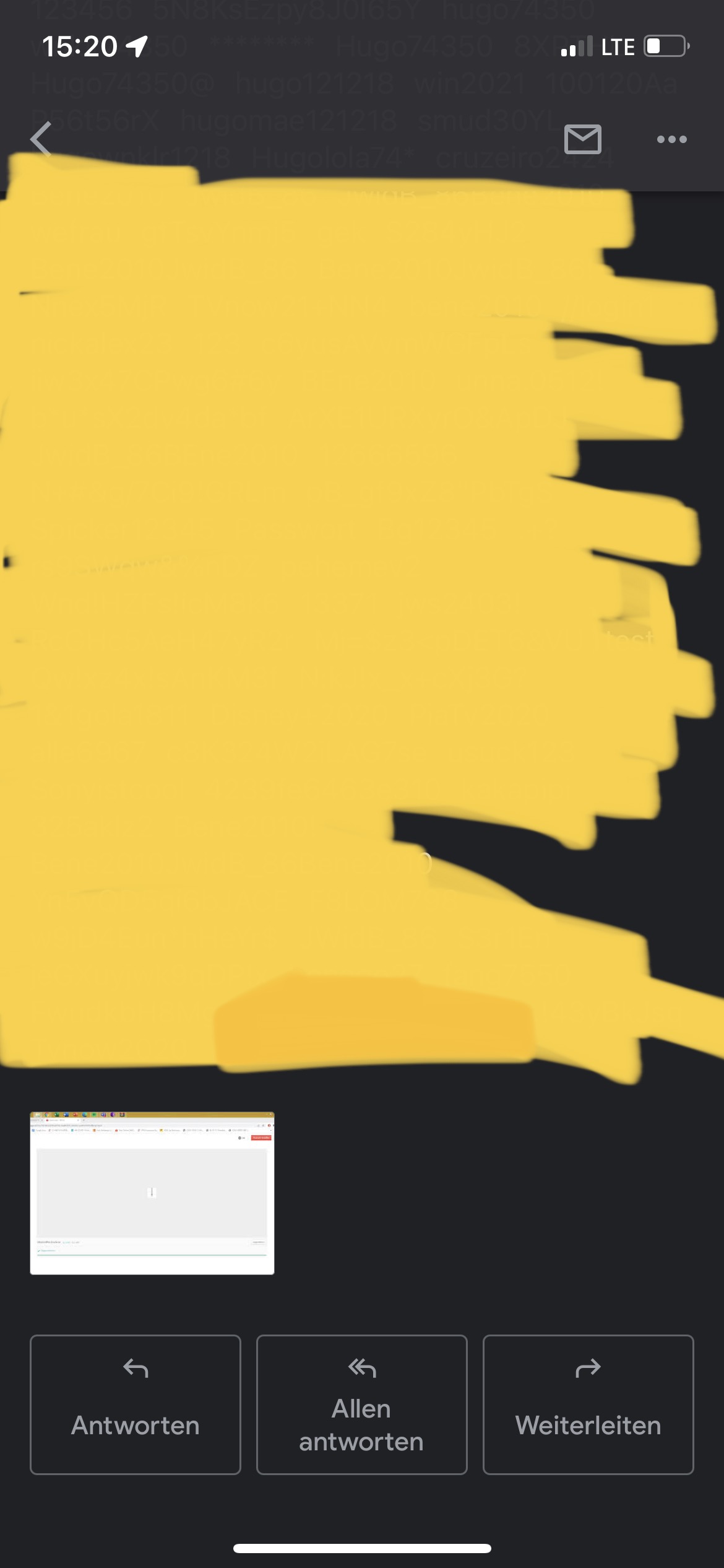 Anbei die Screenshots. Das gelb zensierte sind unterandrem die Passwörter.