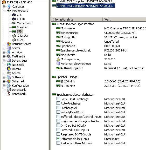 und zwar habe mir 2 MDT 512 Riegeln bei Ebay zugelegt (Beschreibung des Verkäufers:MDT DDR 512 MB DDR PC400 CL2,5 2Bank 256M Chip (32x8))!