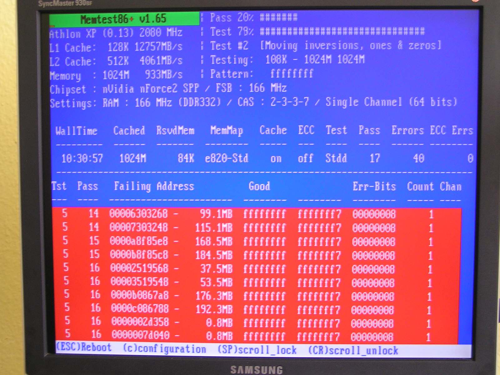 Ich habe die gleich mit Memtest getestet und siehe da, das Program meldet in einem Teil des Hauptfensters mit rotem Hintergrund, etwas was ich nur als Fehler deuten würde: