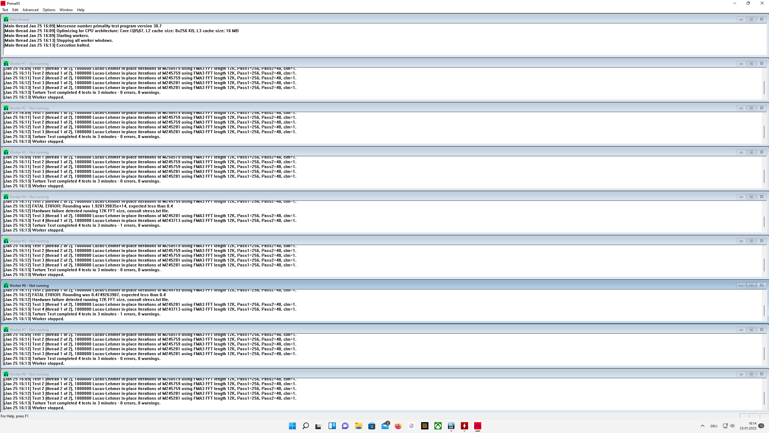 ich hab bei Prime95 das Problem, wenn ich teste, bekomme ich bei einige Worker nach paar minuten Errors, ich weiß nicht was das heißen soll und was ich da machen kann. Ich sehe auch währendessen, dass die CPU während Prime95 am laufen ist, nicht mehr voll ausgelastet ist. Was hat das denn zu bedeuten und was soll ich da machen? ich hab einmal mit 5ghz getestet und 4,9 ghz. Natürlich mit AVX.