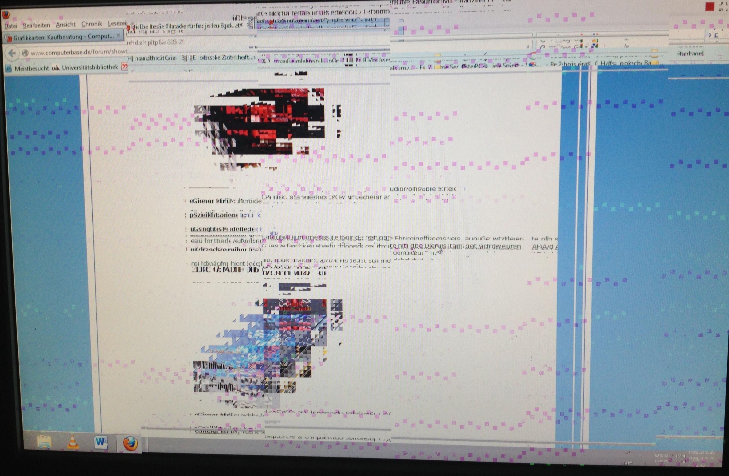 (Im Anhang n Screenshot des Zustands - Markierungen werden gelb oder geschwärzt; Rechner fährt runter, Monitor geht mal aus, Anwendungen stocken)