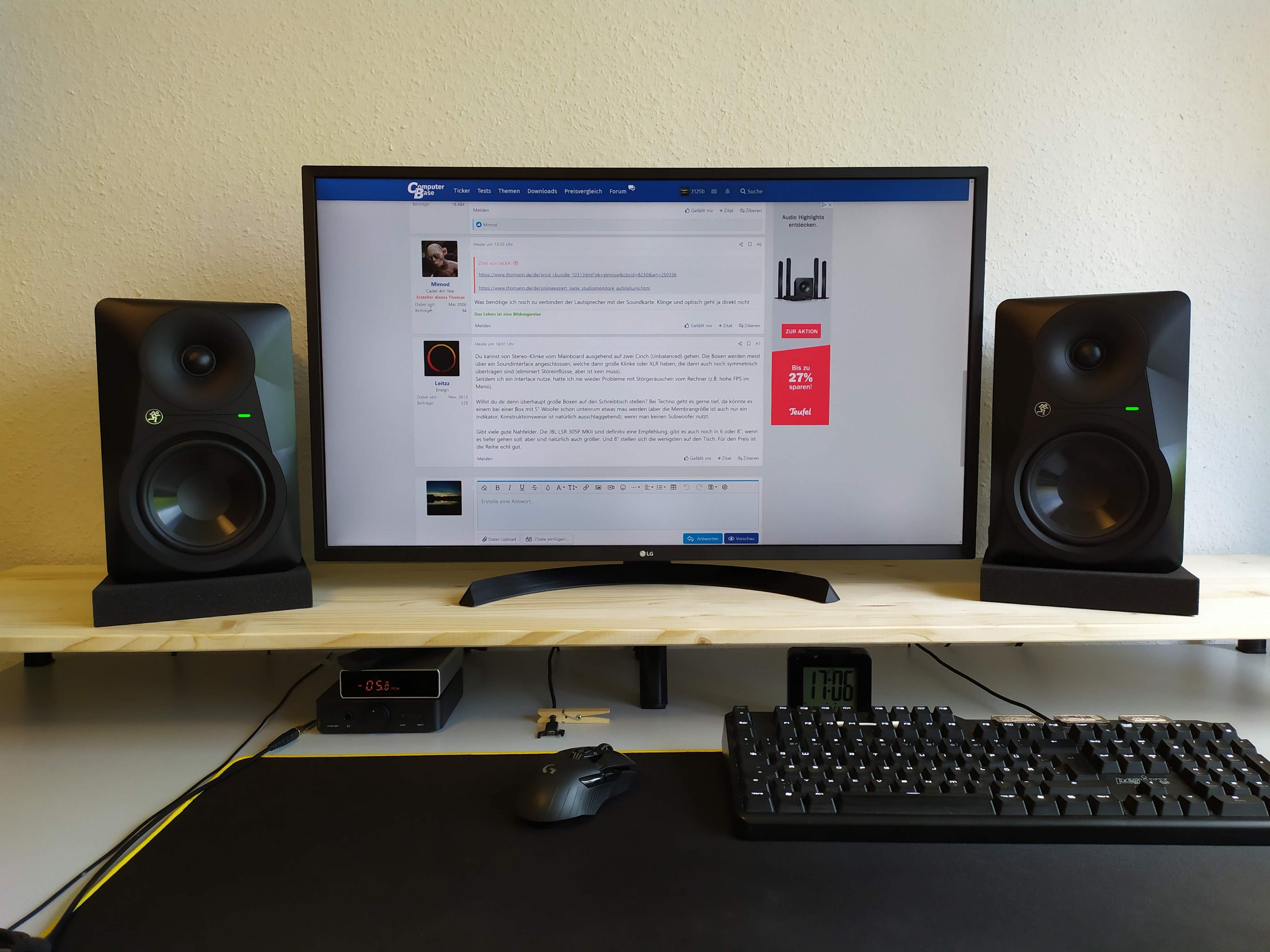 Ich möchte ein neues Sound System haben, welches nicht unbedingt klassisch 2.1 System von der Stange ist. Ein 2-Wege beziehungsweise 3-Wege System wäre toll muss aber nicht zwingend sein. Da ich gerne Techno, Trance und hin und wieder auch Filme anschaue es ist sinnvoll ein ordentliches Soundsystem endlich am Rechner zu haben. Da ich regelmäßig sehr viel Musik höre ist es auch sinnvoll direkt über die Soundkarte gleich raus zu gehen. Nahfeldmonitorboxen (die Fülle an Möglichkeiten ist Wahnsinn) mit Magnetfeldabschirmung (Bedingungen für das neue Sound System) wären klasse. Über Tipps und sehr gute Lautsprecher auf dem und unter dem Schreibtisch wie ich das entsprechend anschließe wäre ich sehr dankbar. Preis zirka 500 - 700€.