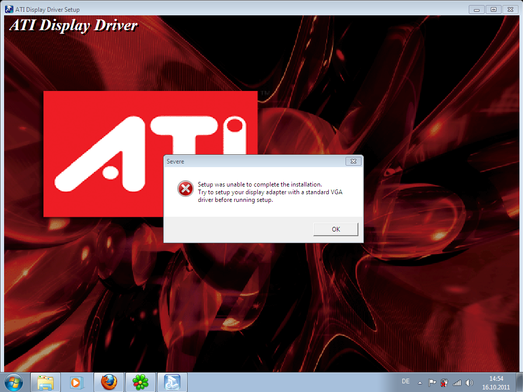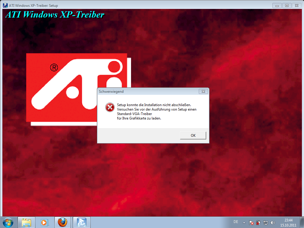 Also, es hängt nur alles daran, dass immer eine Meldung kommt, die mir mitteilen will, dass ich zuerst einen VGA Standardtreiber installieren soll.