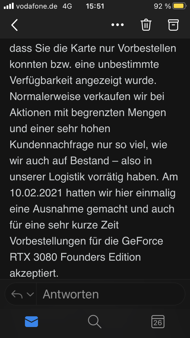Krass, Mindfactory hat die CPU schon auf die Reise geschickt. Das hat keine 50 min gedauert von der Bestellung bis zum Versand.