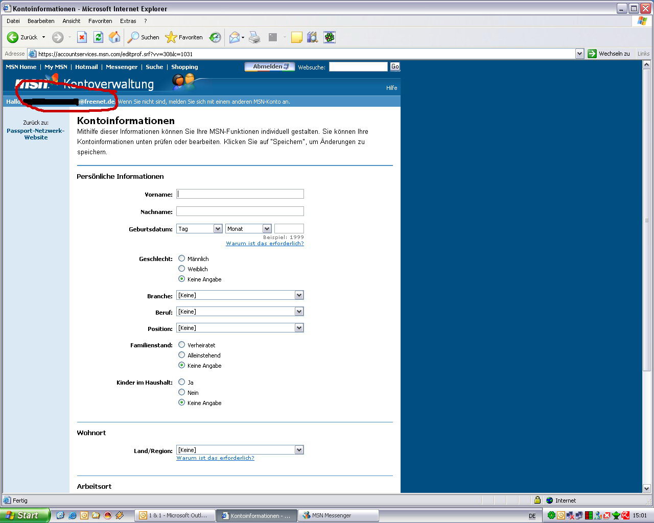 Ok, um genauer zu sein benötigt man für den MSN Messenger laut Systemvoraussetzungen ein "Microsoft .NET Passport" -> siehe hier http://webmessenger.msn.com/?mkt=de-de