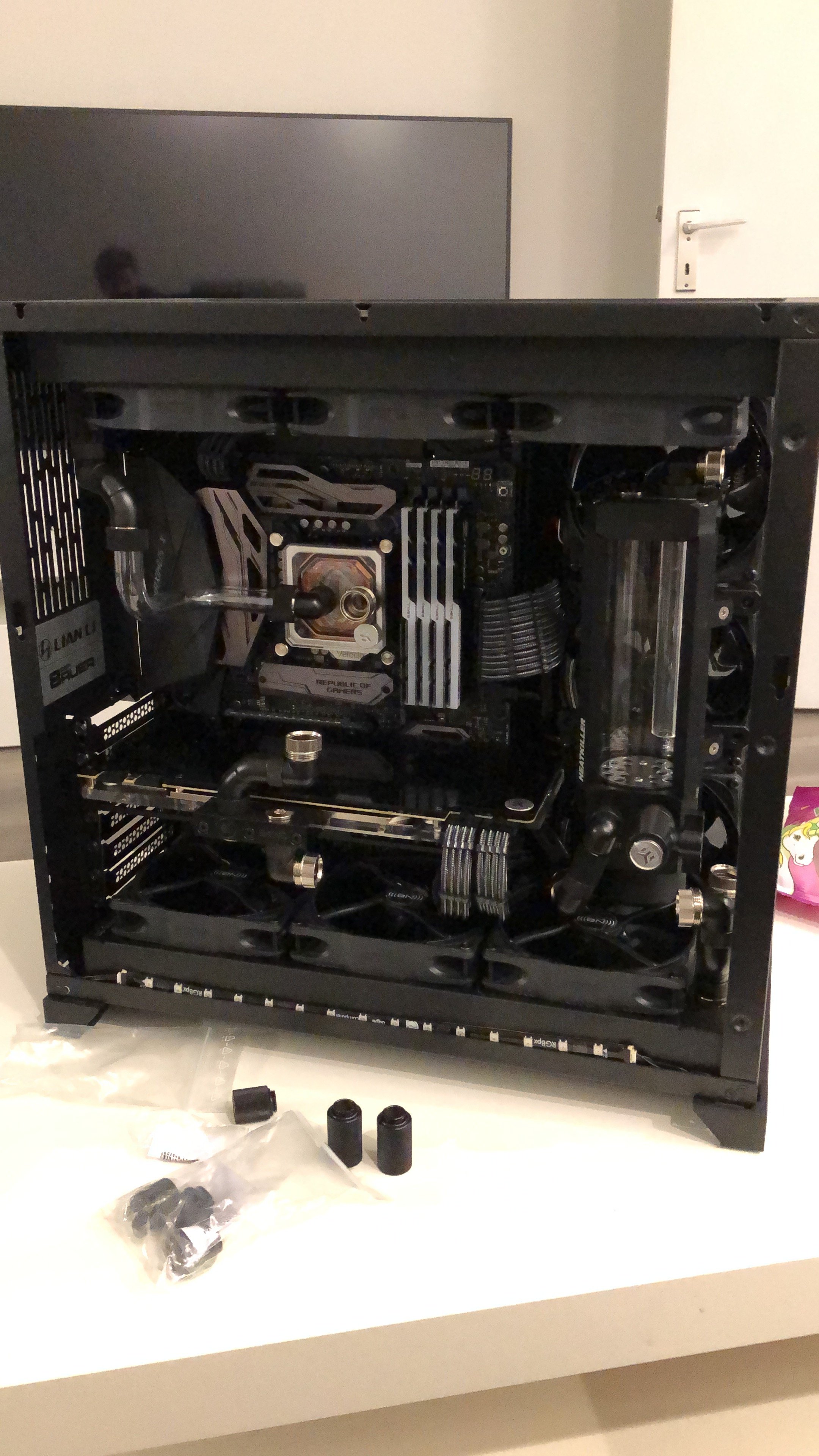 Ich hatte einfach gar keinen Bock mehr, da ich stundenlang versucht habe mit der Tube direkt zum Radiator zu gehen. Hab es einfach nicht hinbekommen. Jetzt habe ich eh auf den 9900K gewechselt mit XI Formula Board und sieht jetzt alles etwas cleaner aus.