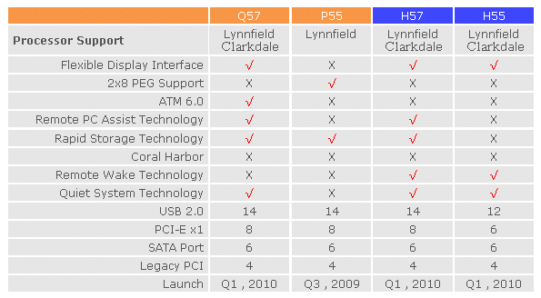 Die Chipsätz sind ja ausschließlich für die CPUs mit integrierter Grafik gemacht. Die H-Reihe wird dadurch noch mehr beschnitten. Sie hat z.B. nur die Möglichkeit 1 Grafikkarte zu nutzen und nicht mal mehr den beschnittenen 2x8 PCIe Support des P55. Auch sind es nochmal 2 PCIe - Lanes weniger die der H55 zur Verfügung hat (6 statt 8)
