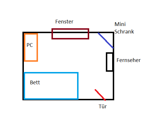 Dort steht nichts wirklich blockierendes. Ein Fenster, auf der Rechten Seite vom Fernseher. Habe das mal in den Anhang gezeichnet. Dort steht alles beschrieben.