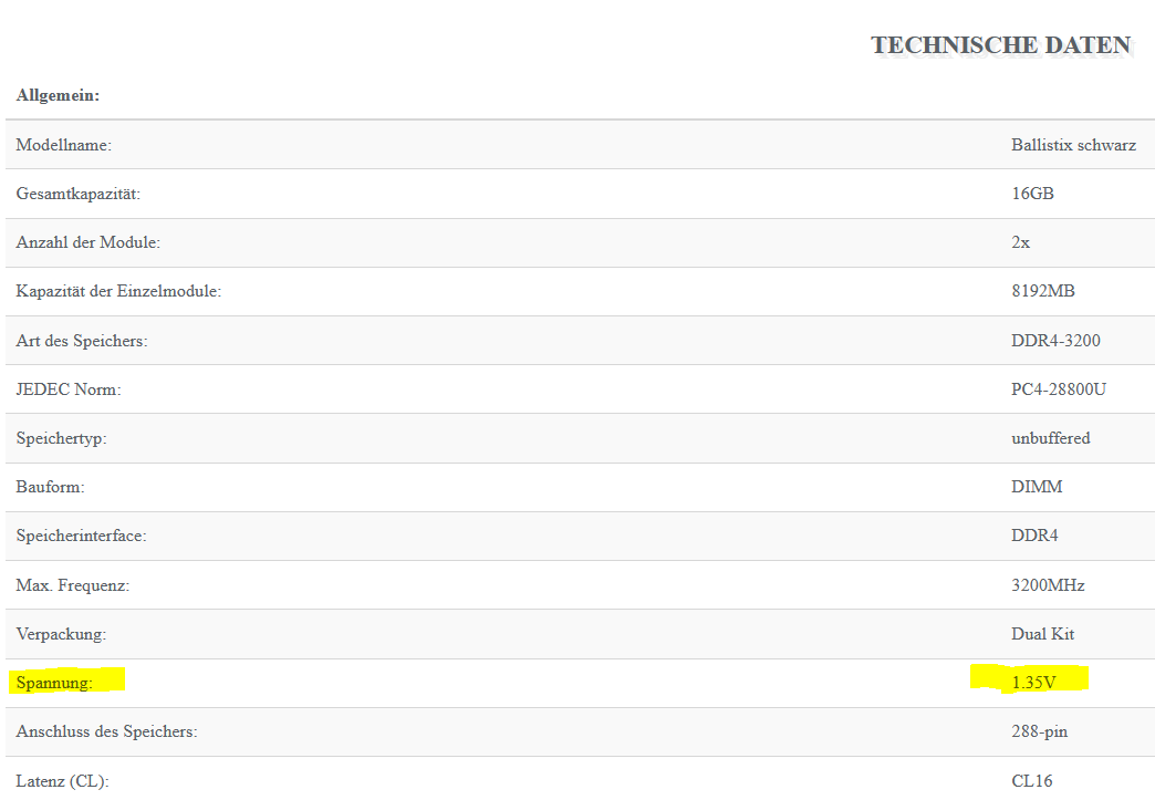 Also da steht doch jetzt ganz klar: CL16 und 1,35 V.deineMudda schrieb:Doch tun sie, Micron zum Beispiel: