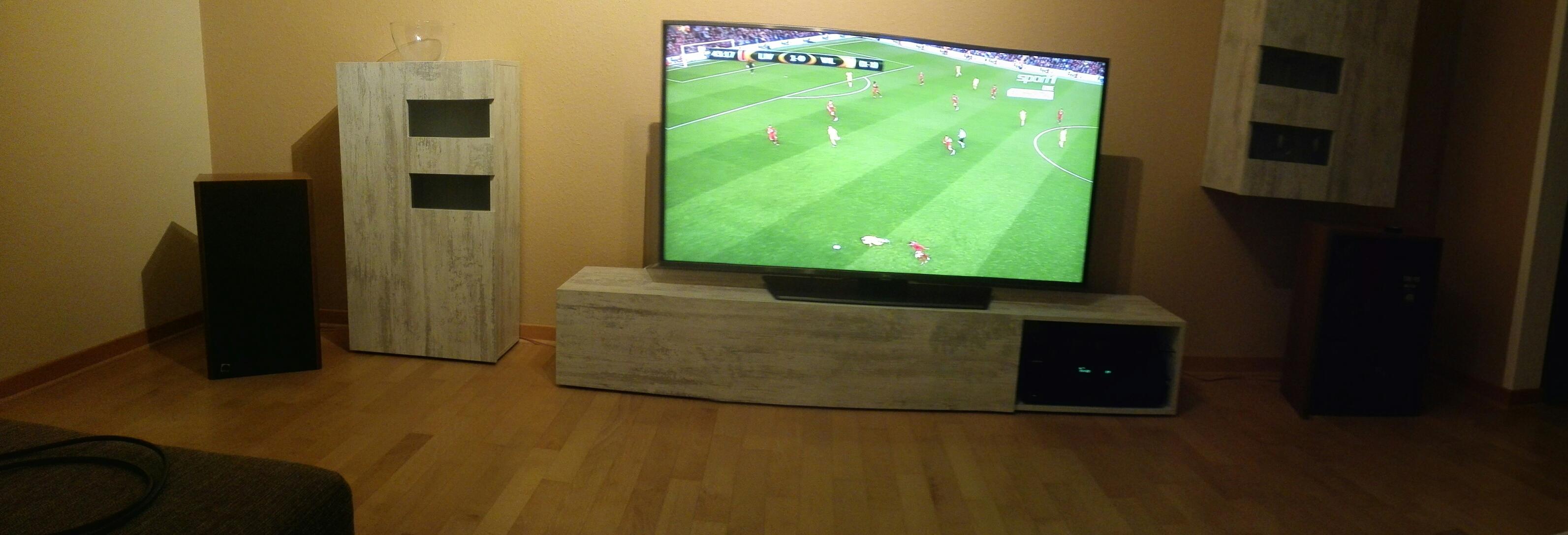 Zuvor aber mit einem Zollstock die Abstände von Hörposition zu den einzelnen LS ermitteln und im AVR Menü hinterlegen