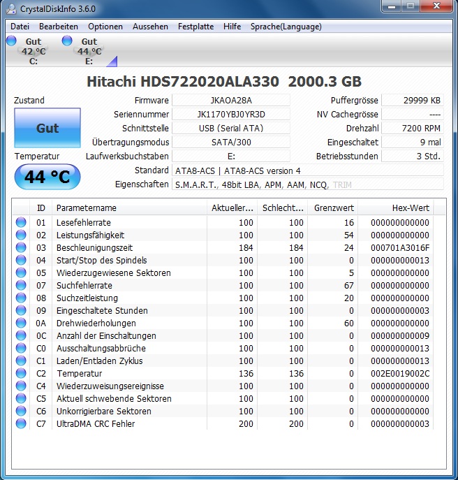 Ich bin seit heute ein Besitzer einer Hitachi - 2 TB Platte, die extern in einer ICY BOX usb3.0