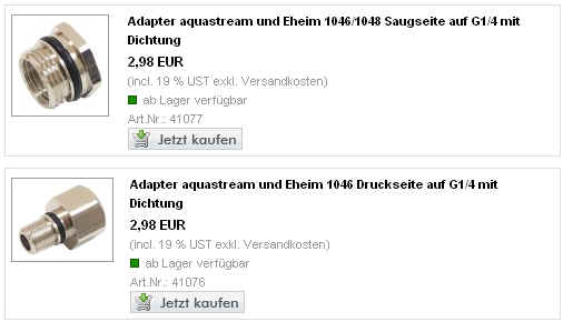 Ich hab jetzt noch Eheim Bundle Ein/Auslass-Adapter für 1046 hinzugefügt. Passen die?