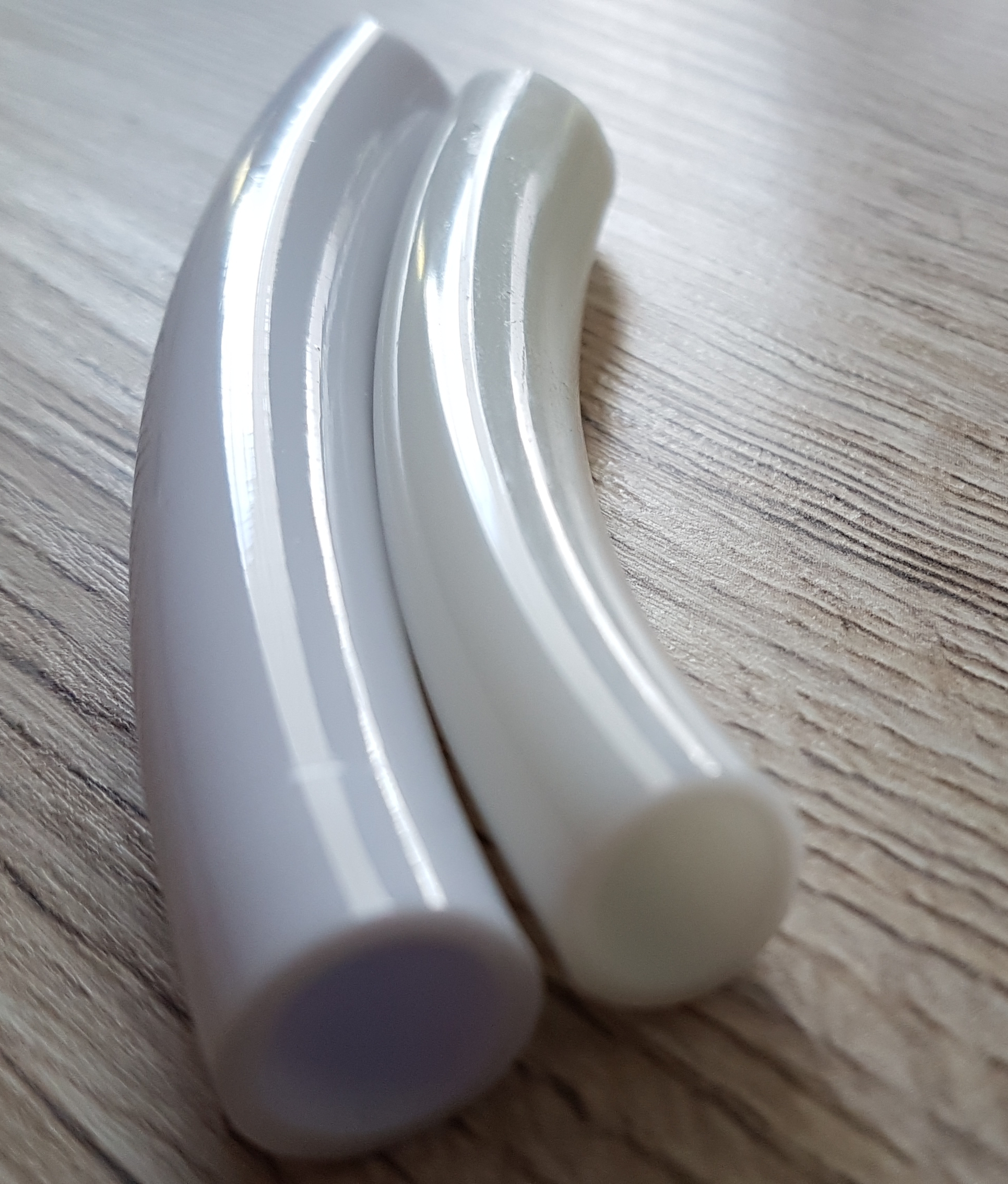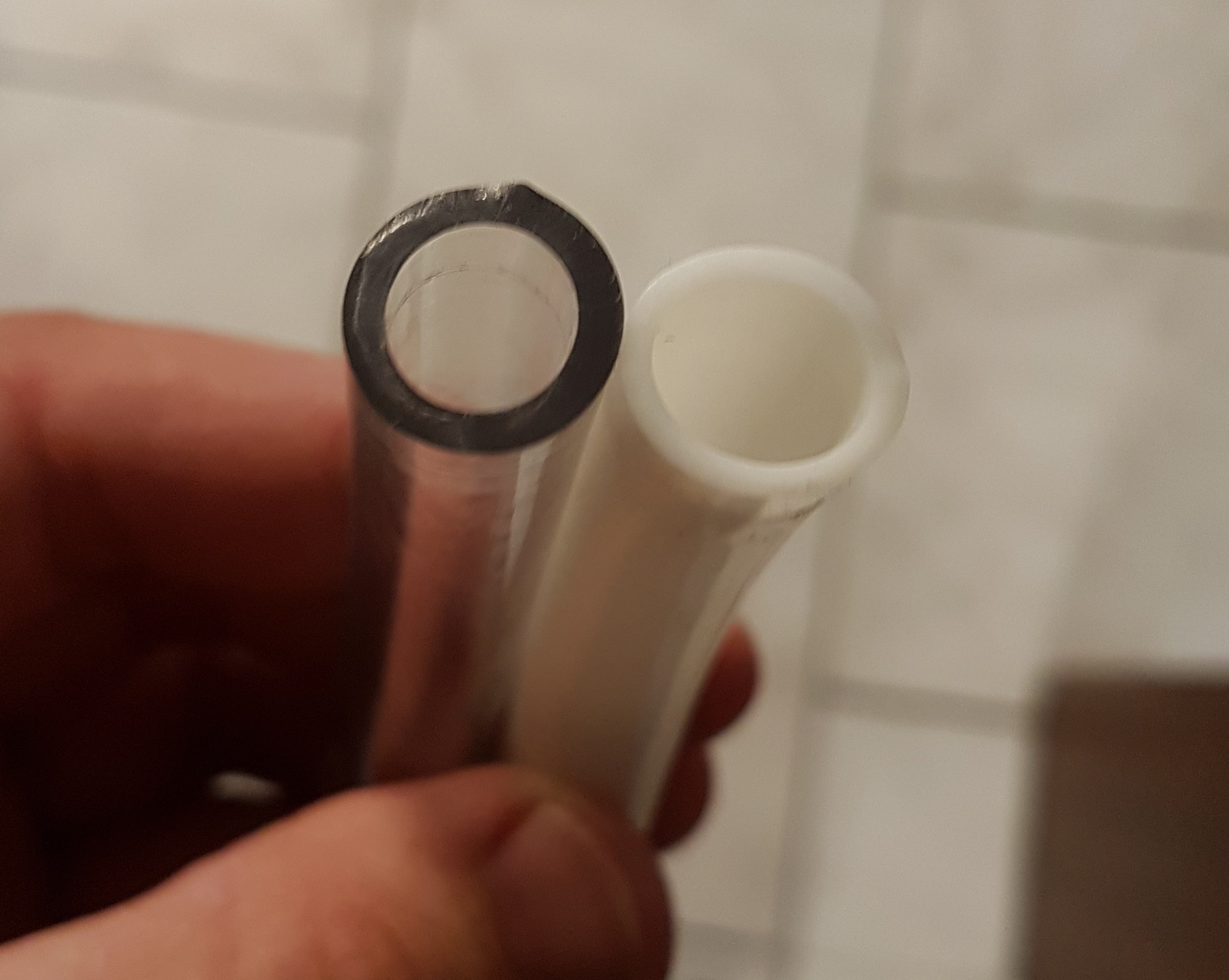 Im Gegensatz zu den Masterkleer Schläuchen merkt man eine höhere Qualität. Der Mayhems Schlauch hat ein viel reineres Weiß, ist etwas Dickwandiger (obwohl beide mit 10/13 angegeben) ist steifer aber dennoch flexibel.