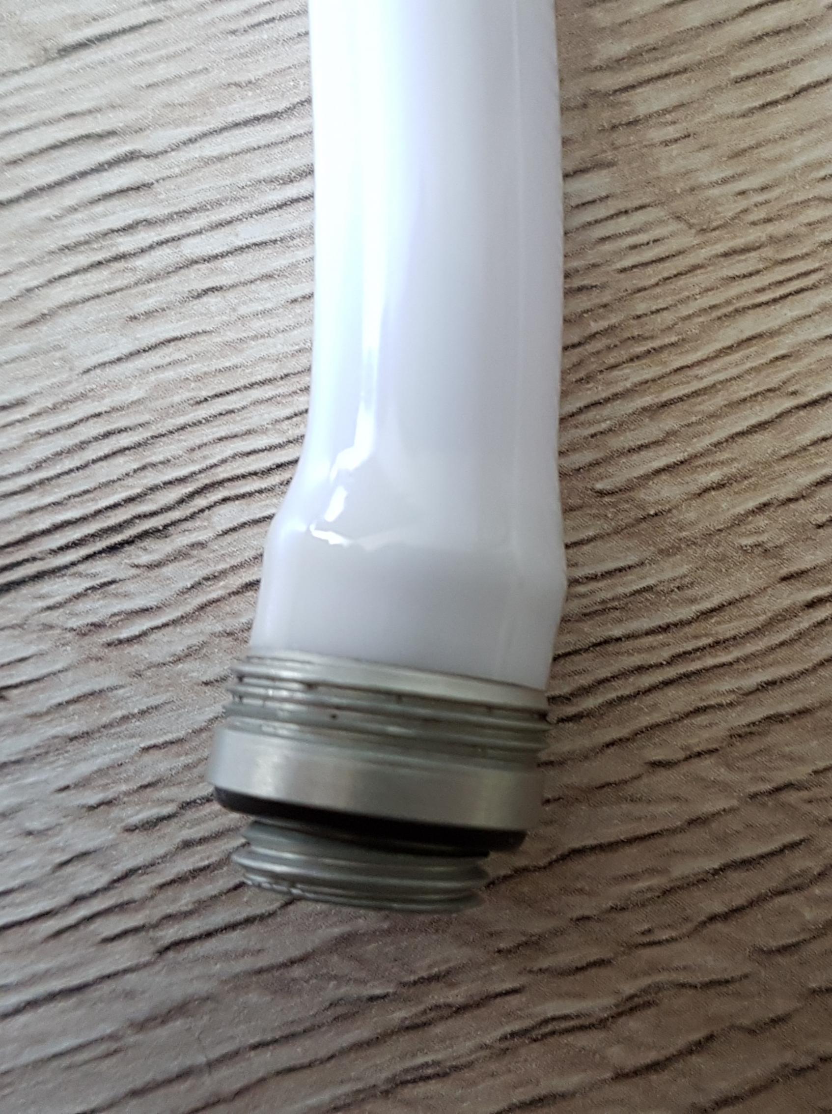 Hier die Bilder. Habe den Schlauch heute mit viel warmen Wasser, Tüchern als Haltehilfe und einigen bösen Worten abbekommen.