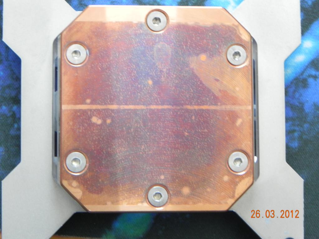 Der Kühlerboden des HK 3.0 wurde mit einer Schutzfolie abgedeckt. Dann verfärbt sich das Kupfer ebenfalls.