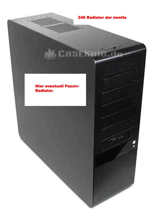 -Radiator(en) sollten so montiert werden das das System transportabel bleibt, also alle Pumpen und Radiatoren im Gehäuse aber die Radiatoren sollen nach aussen abstrahlen (eventl. mit Lüfterunterstützung)