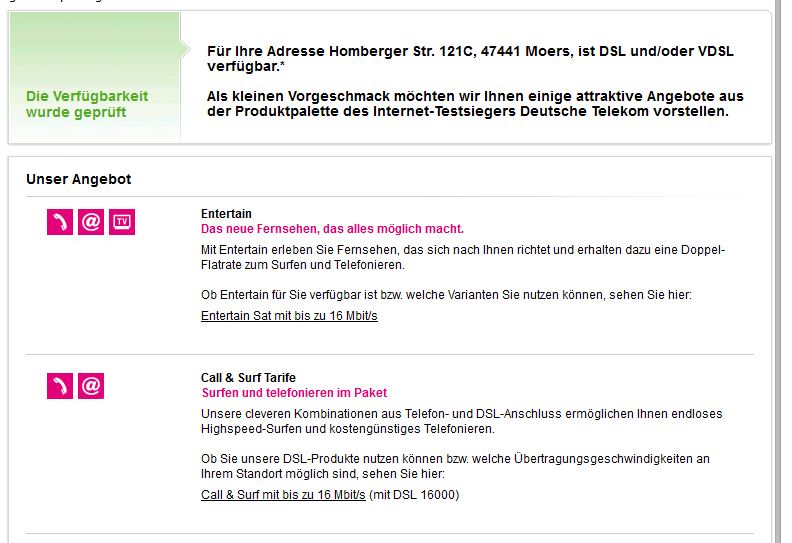 MrEisbaer schrieb:Was bei irgendwelchen Verfügbarkeits-checks steht ist uninteressant, laut Verfügbarkeits-check der Telekom sollte in meiner alten Whg DSL 50MBit verfügbar sein, erst eine direkte Nachfrage im T-Punkt ergab, das es nur 16MBit sind.