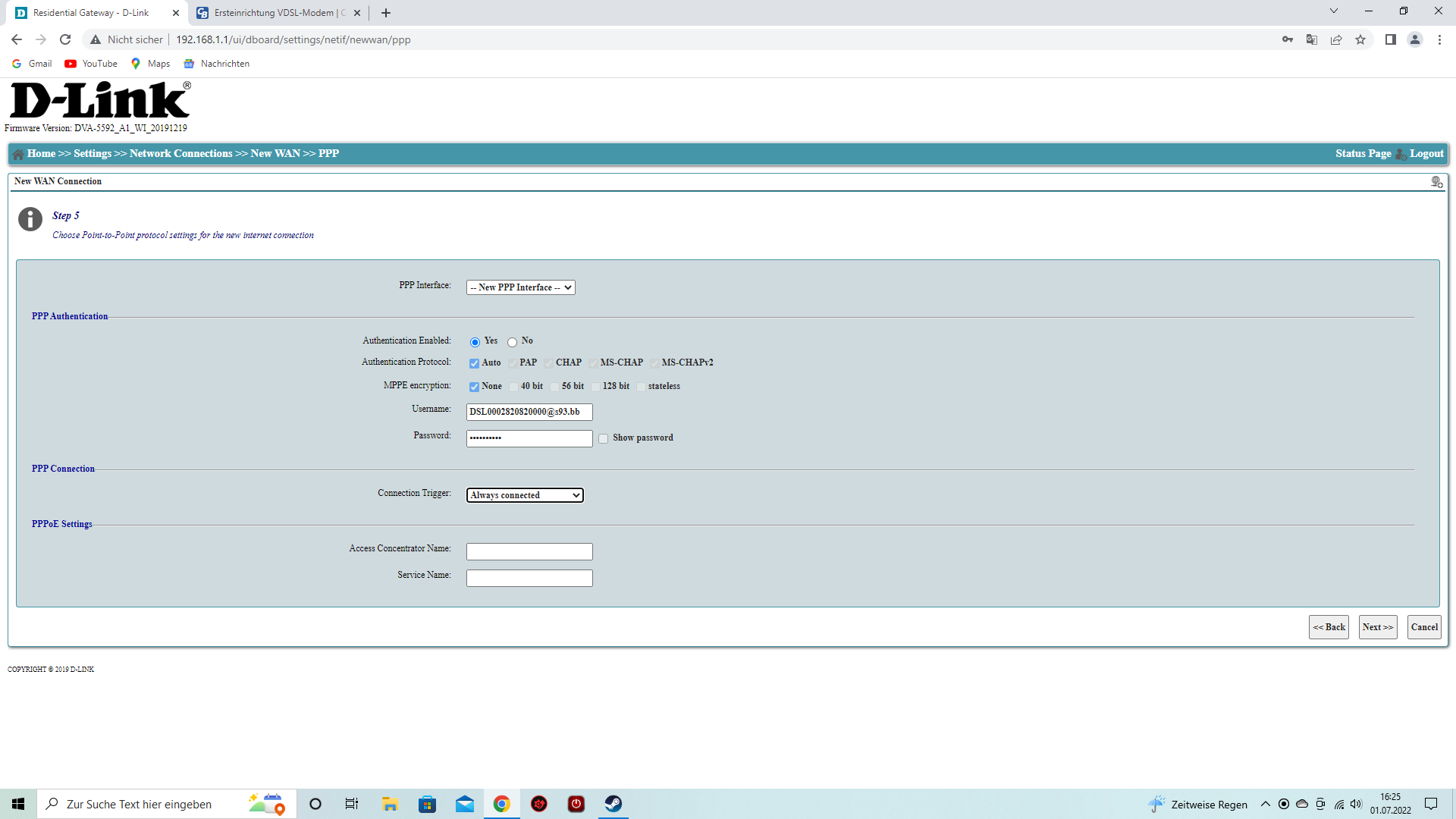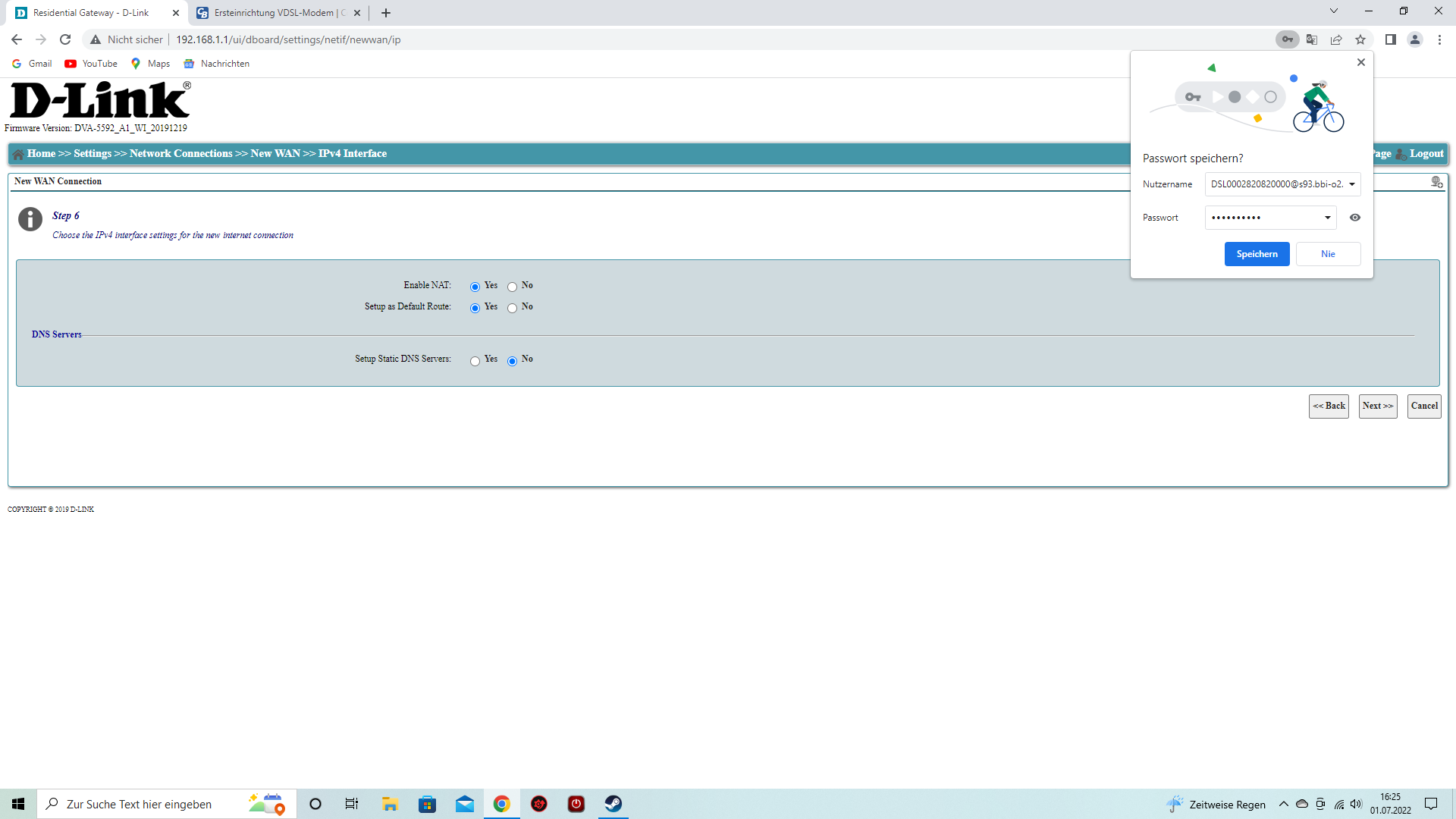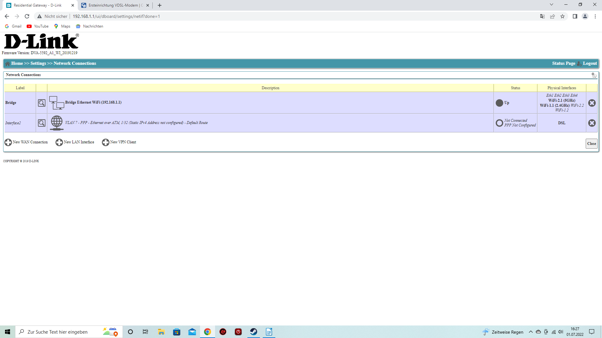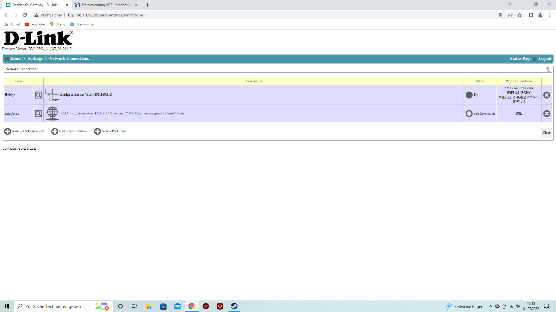 Jetzt kommt es zu dem Problem, als VDSL-Router besitze ich folgendes Gerät: D-Link DVA 5592, eher untypisch in Deutschland, nach meinen Recherchen stammt dieses Gerät aus Italien, deswegen findet man nur alles auf Italienisch.