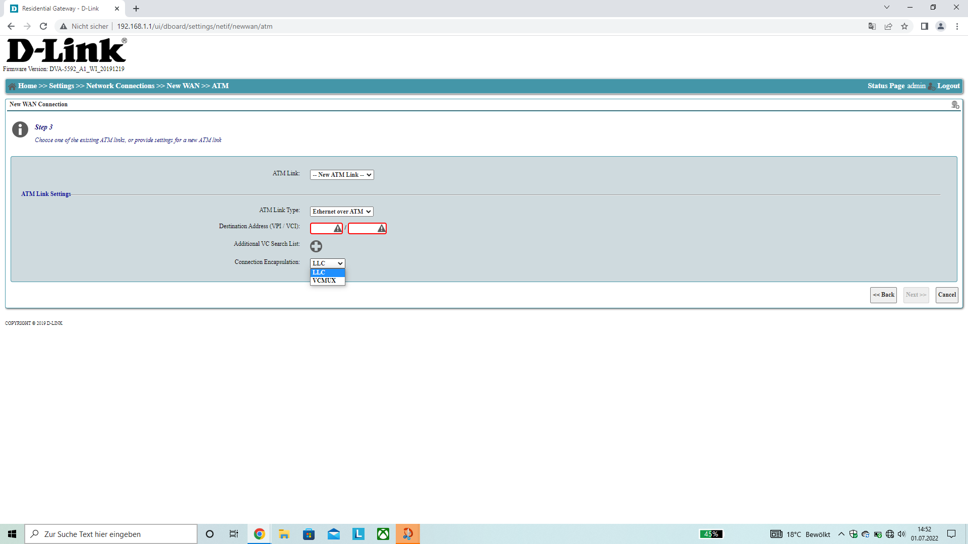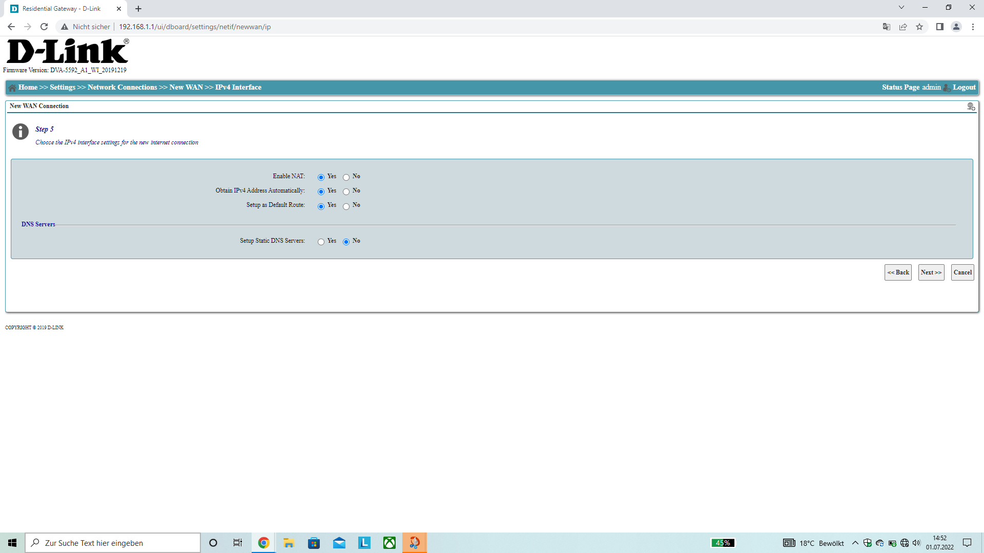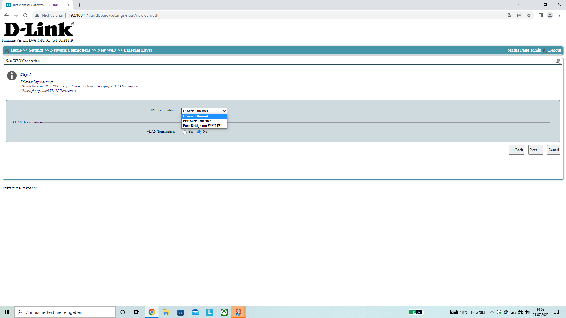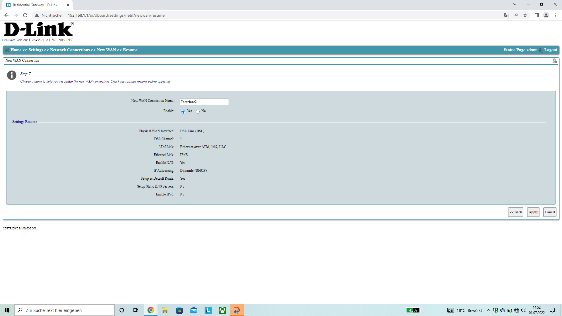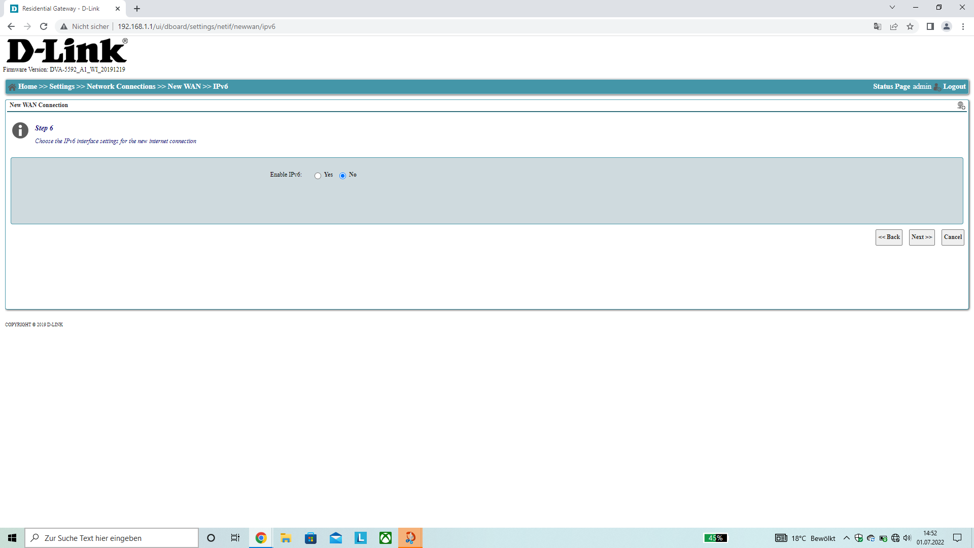 Jetzt kommt es zu dem Problem, als VDSL-Router besitze ich folgendes Gerät: D-Link DVA 5592, eher untypisch in Deutschland, nach meinen Recherchen stammt dieses Gerät aus Italien, deswegen findet man nur alles auf Italienisch.