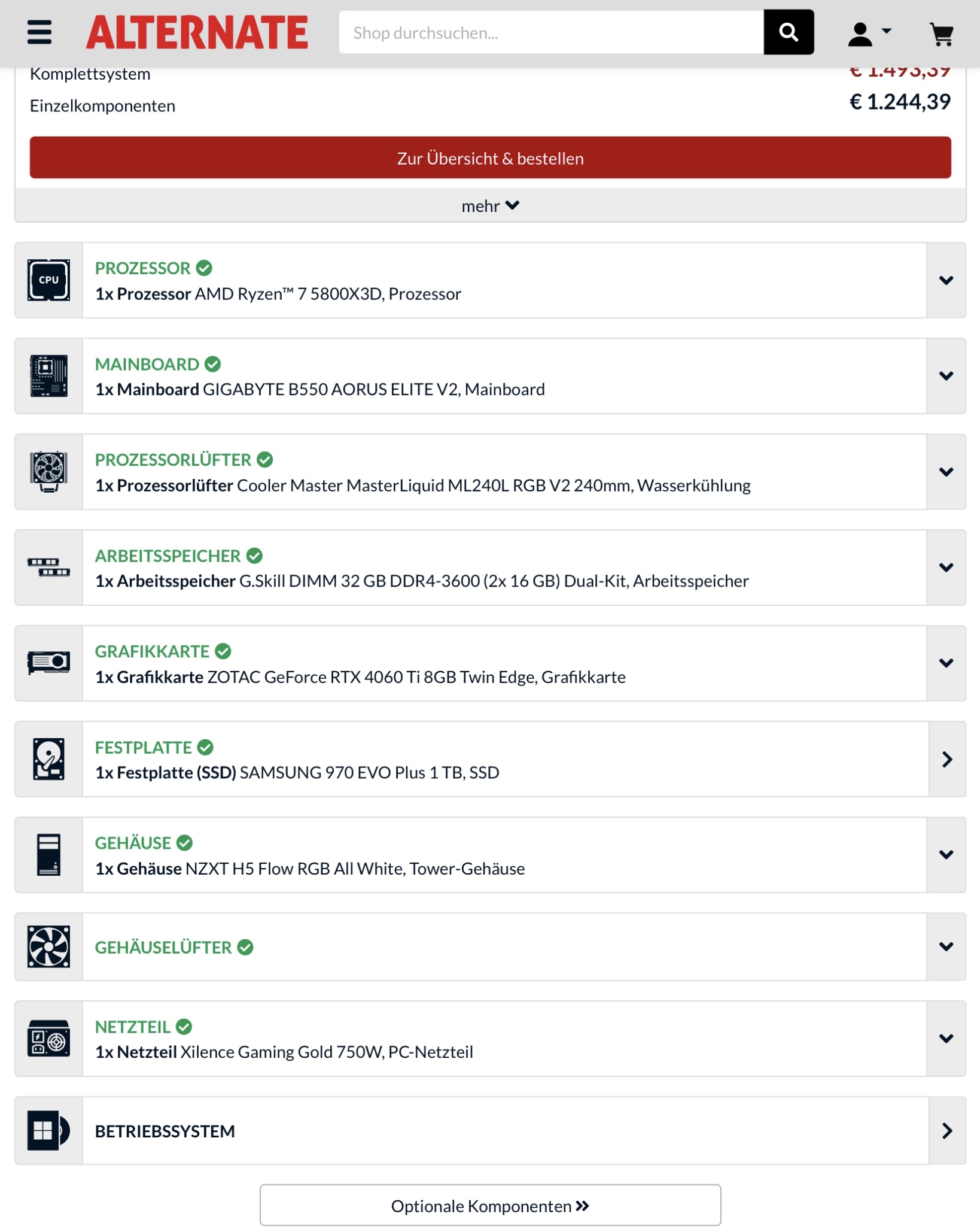 Ich habe bisschen Materie durchwühlt und habe versucht mir besten Wissen und Gewissens auf Alternate im Konfigurator einen PC zusammen zu stellen, der für meine Bedürfnisse ausreichen sollte.