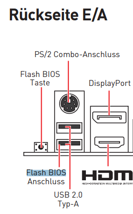 Wie lange hat das ganze überhaupt gedauert? Das sollte normal schon mindestens paar Minuten dauern.CGPU schrieb:Dann habe ich die Datei MSI.ROM auf einen leeren USB-Stick kopiert und in den USB-Port "oben recht" gesteckt (gem. Anleitung der korrekte). Dann den Taster gedrückt. Ein rotes Licht ging an, hat begonnen zu blinken und ist dann erloschen.