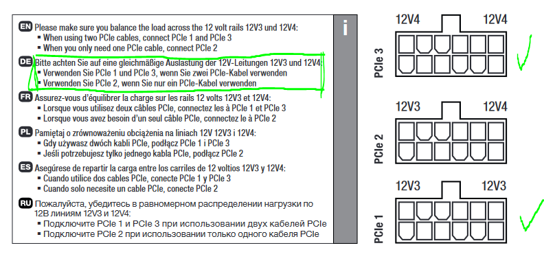 - Weiteres Netzteil an Grafikkarte angeschlossen, falls dem die Power gefehlt hat. Fehlanzeige hat nicht geholfen.