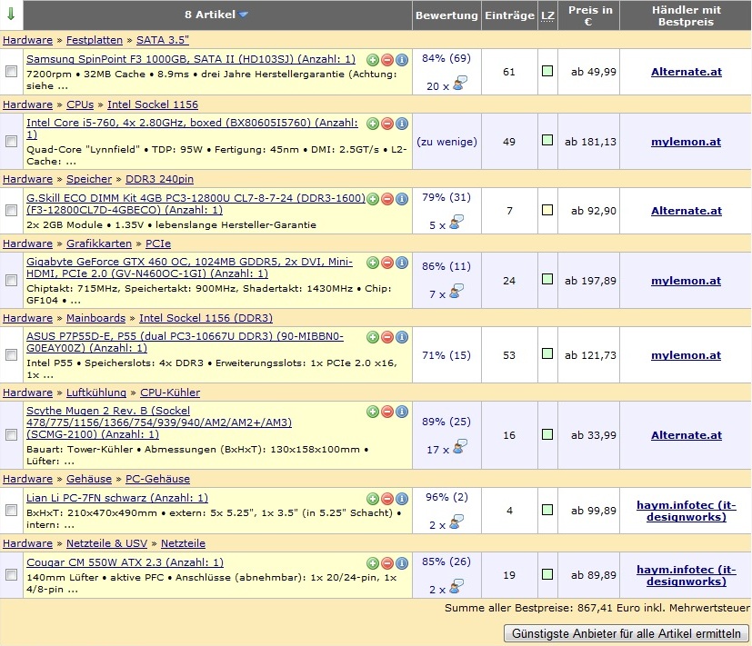 aber wenn du auf viel ghz scharf bist takte ruhig ein i5-760 (und du wirst trotzdem weniger leistung dank graka haben