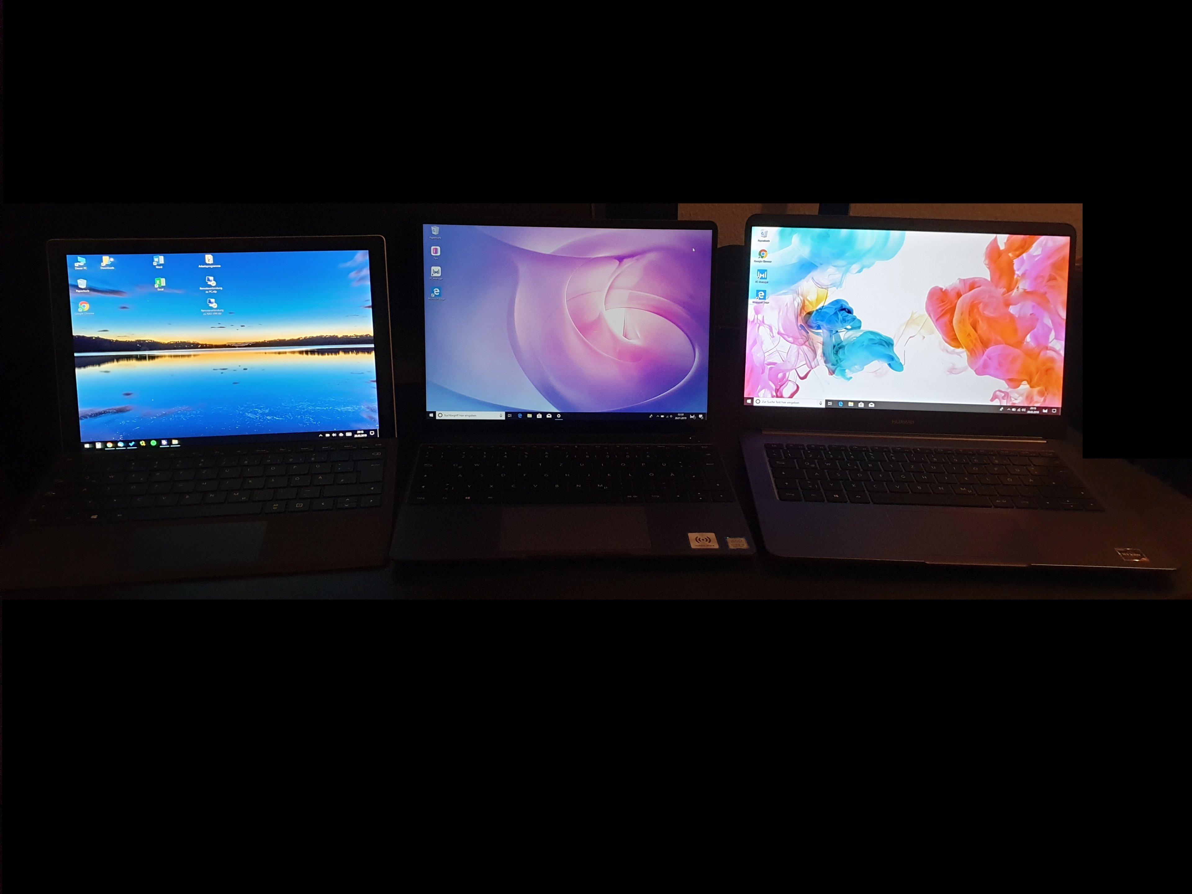 Helligkeitsunterschied: Surface Pro, Matebook 13 und Matebook 14