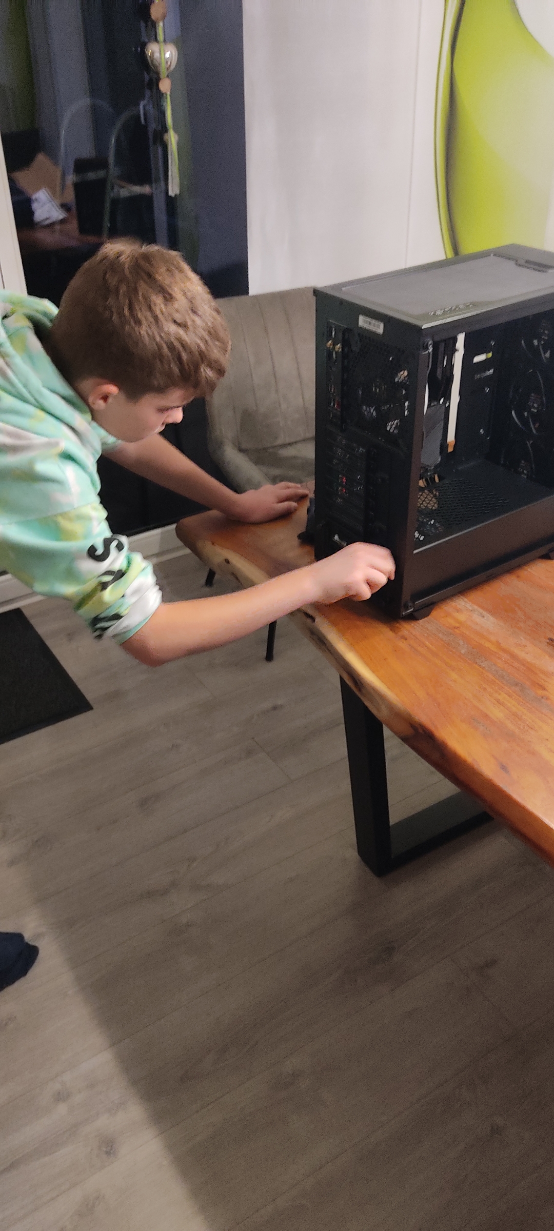 Nachdem alles am Gerät angeschlossen war, kam der Moment der Wahrheit. Mein Sohn hatte die Ehre den ersten Start einzuleiten. Wir waren gespannt, ob er angeht und auch die Lüfter leuchten - und genauso kam es dann auch. Mein Sohn war happy und ich auch erleichtert, dass augenscheinlich erstmal alles korrekt funktioniert.