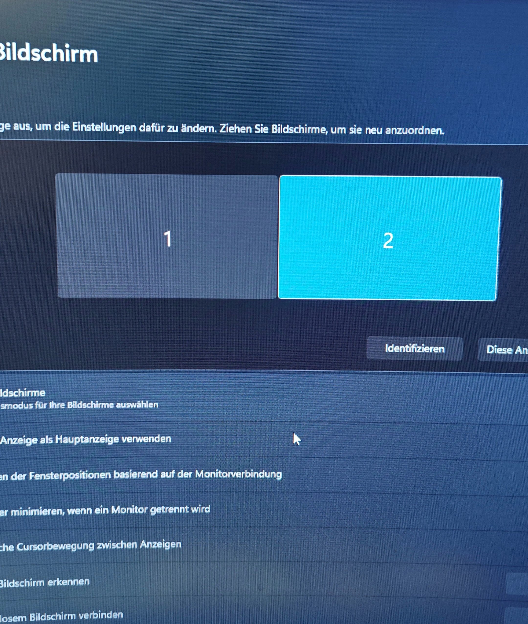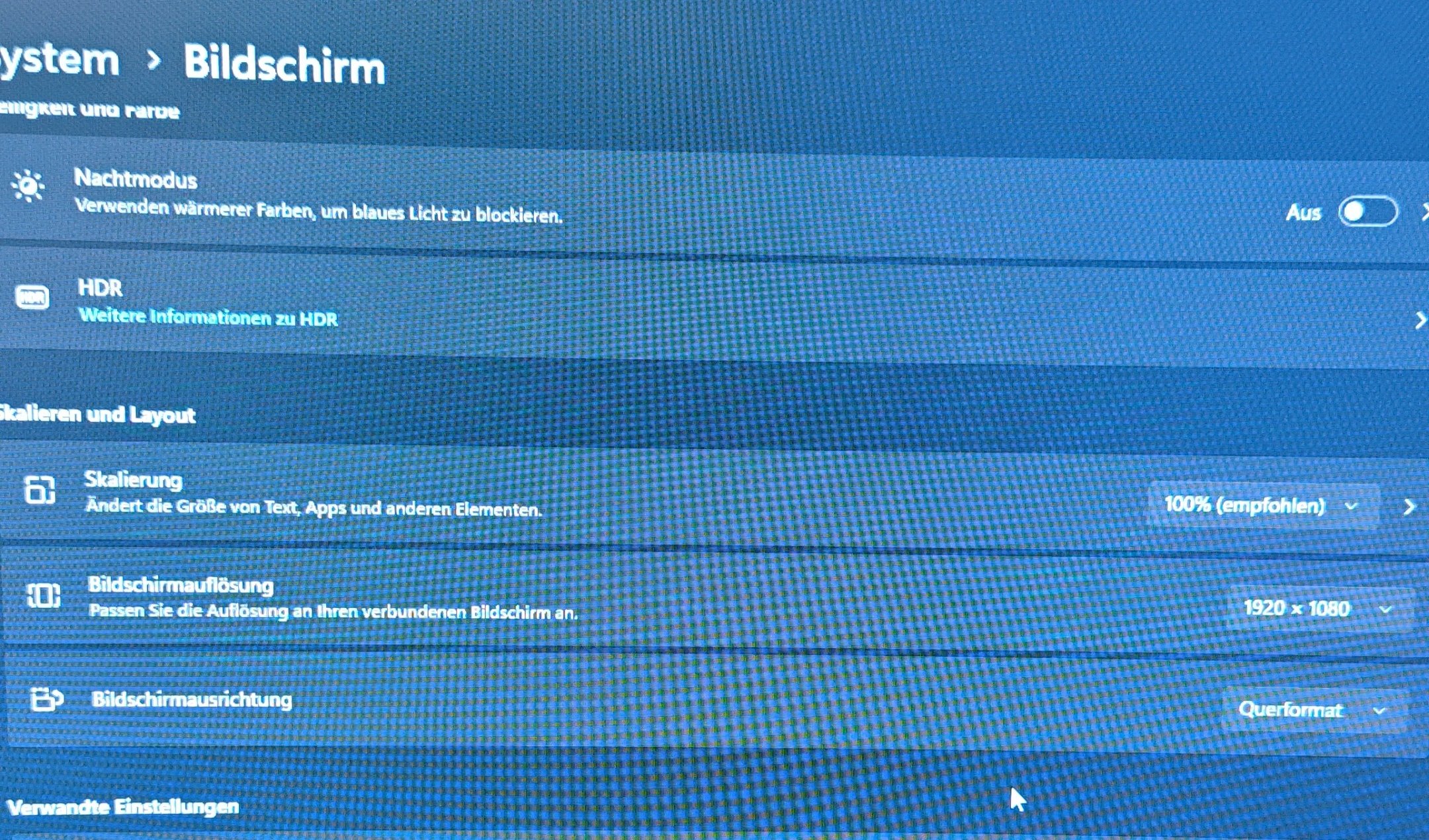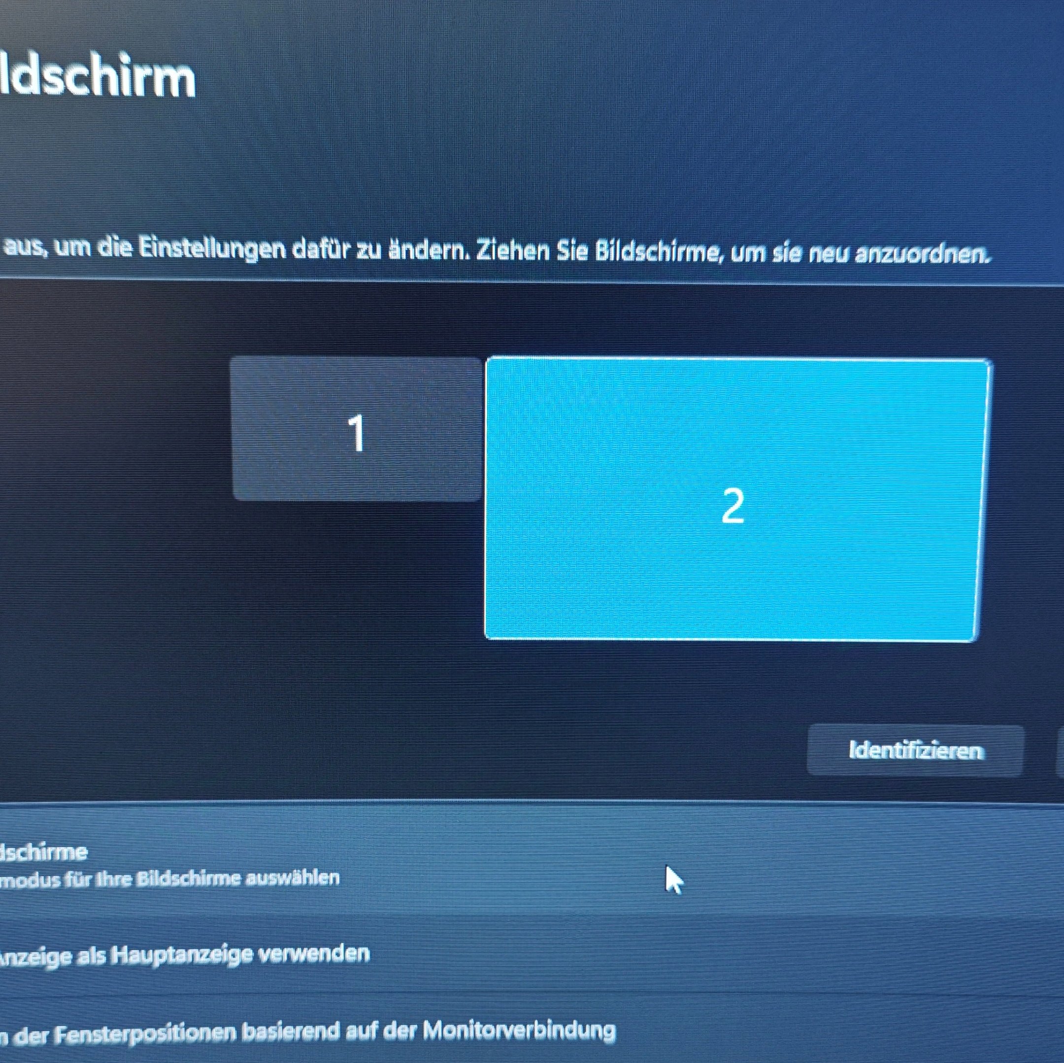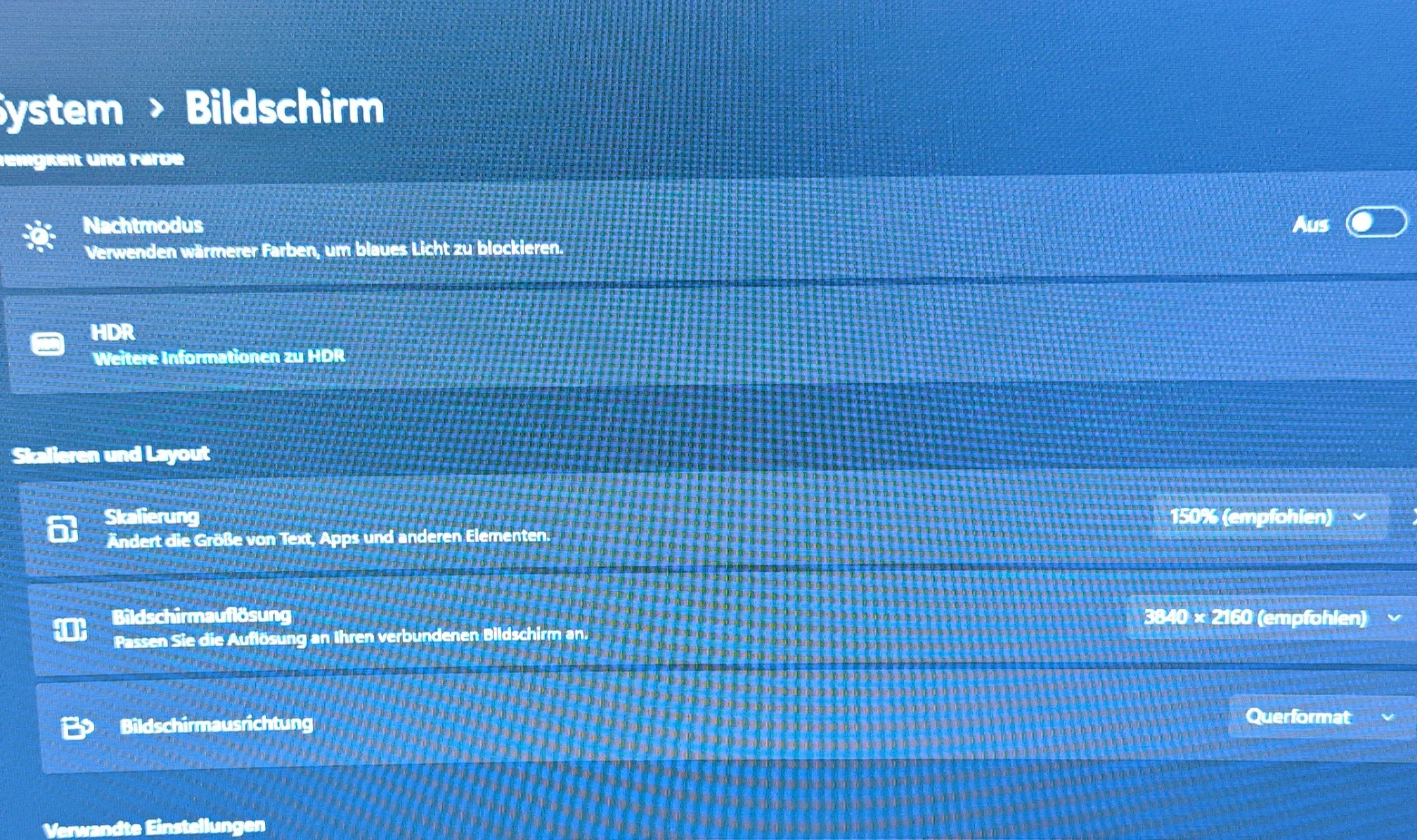 Nun habe ich den Monitor angeschlossen und wollte eben einstellen, dass die Ränder sauber übergehen und habe dabei festgestellt, dass in den Windows Einstellungen der 4K Monitor insgesamt 4 mal so groß dargestellt wird. Daher kriege ich keinen sauberen Übergang von Monitor 1 in Monitor 2 hin. Stelle ich bei der Auflösung den Monitor auf FHD passt es natürlich. Aber ich möchte ja den 4K Monitor nicht auf FHD stellen. Oder zeigt er mir dann im Videobearbeitungsprogramm trotzdem in 4K an?