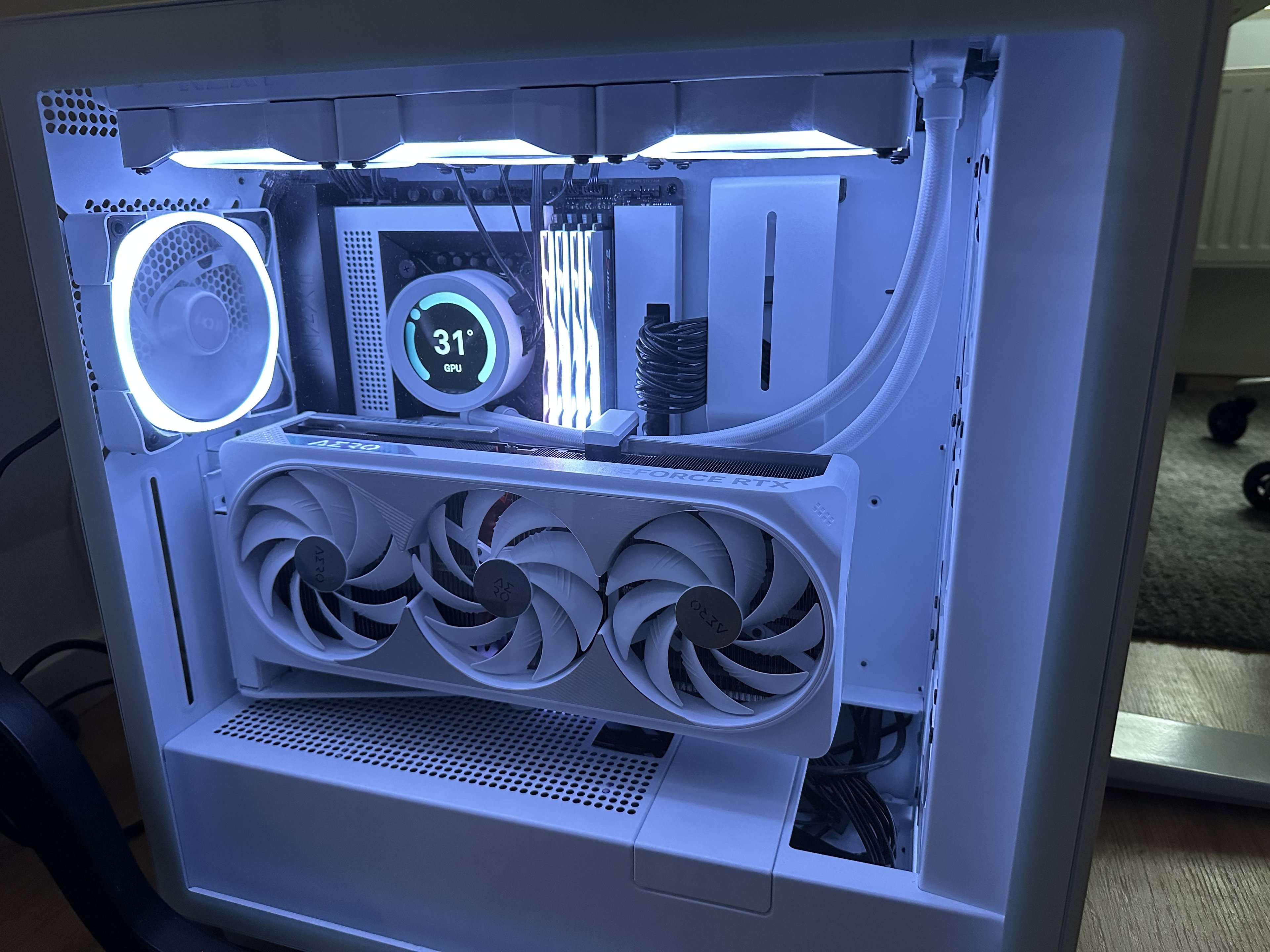 Ich warte noch auf eine chance für vorne diese Blende zu drucken - das Loch soll noch zu. Außerdem musste ich die GraKa auf die Aero wechseln, weil die ASUS Strix dermaßen gerasselt hat… die haben sie ja wohl nicht mehr alle bei ASUS…