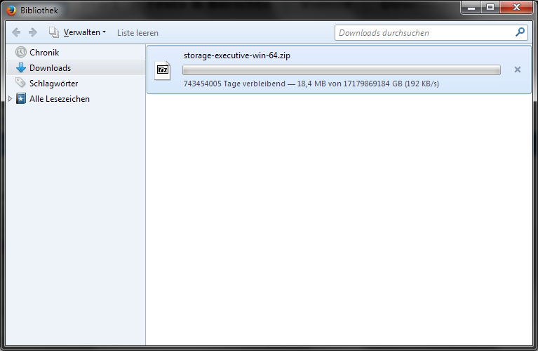 Es ging mir eher um die Downloadgröße und Zeit (siehe PNG). Da muss wohl ein Fehler vorliegen