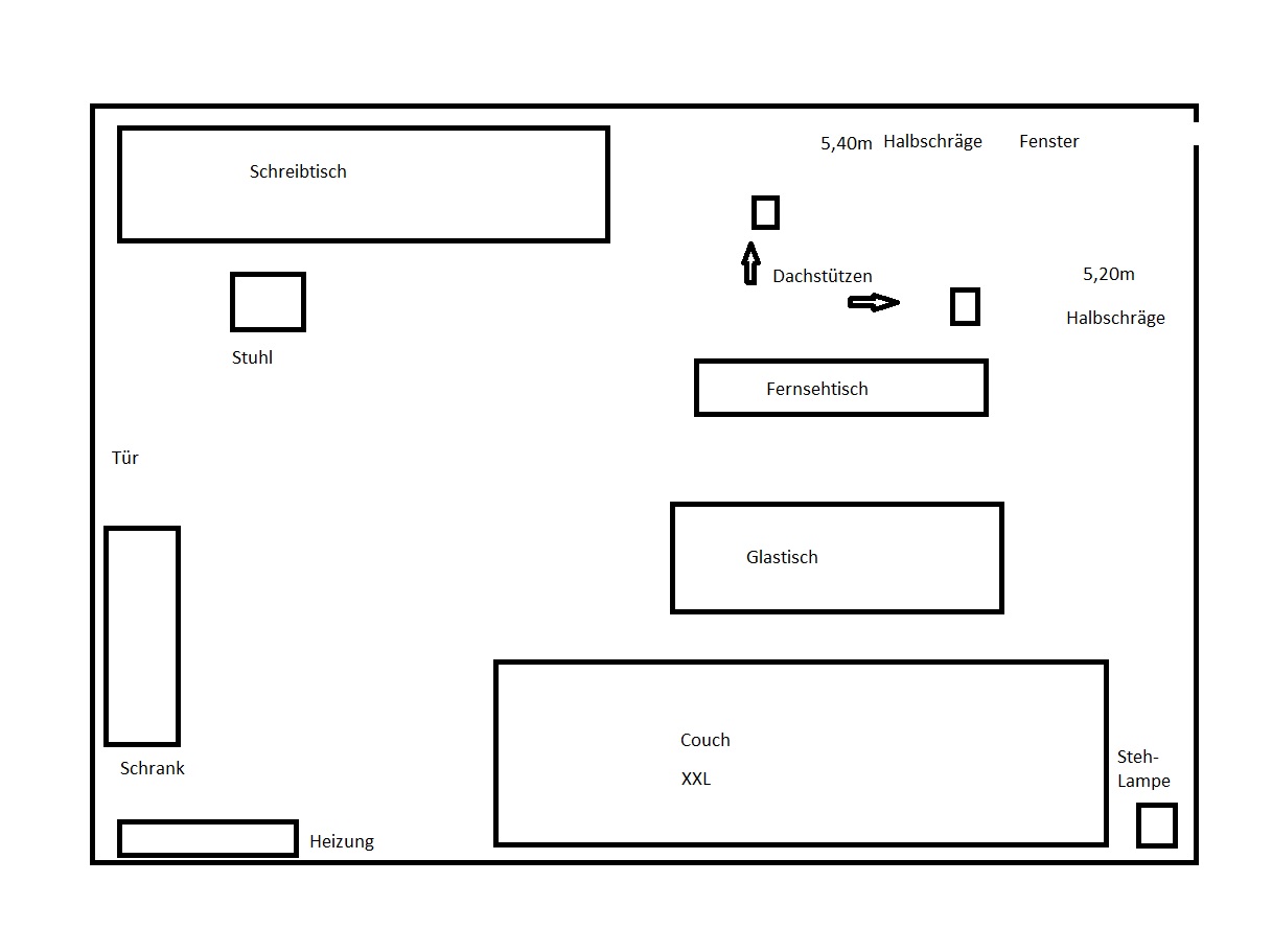 Vereinfachte Grundriss von meinem Wohnzimmer habe ich beigefügt.