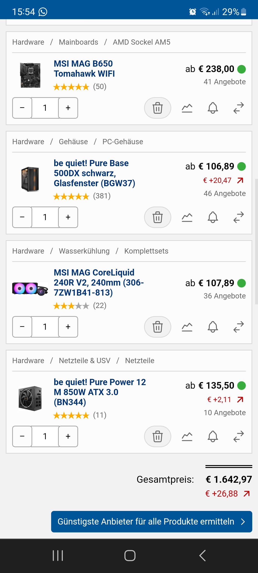 Folgende Artikel könnte ich für 1390€ besorgen: