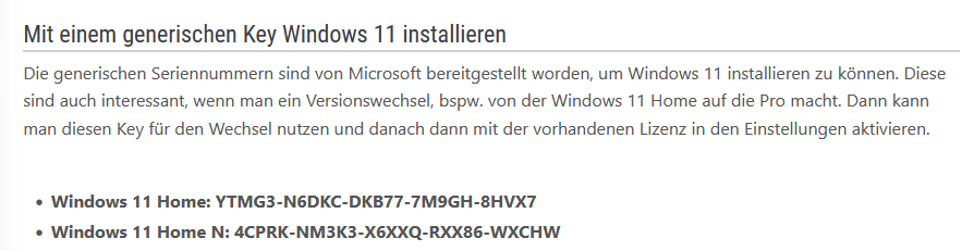 Dies Key sind aber nur für die Installation, nicht für die Aktivierung.