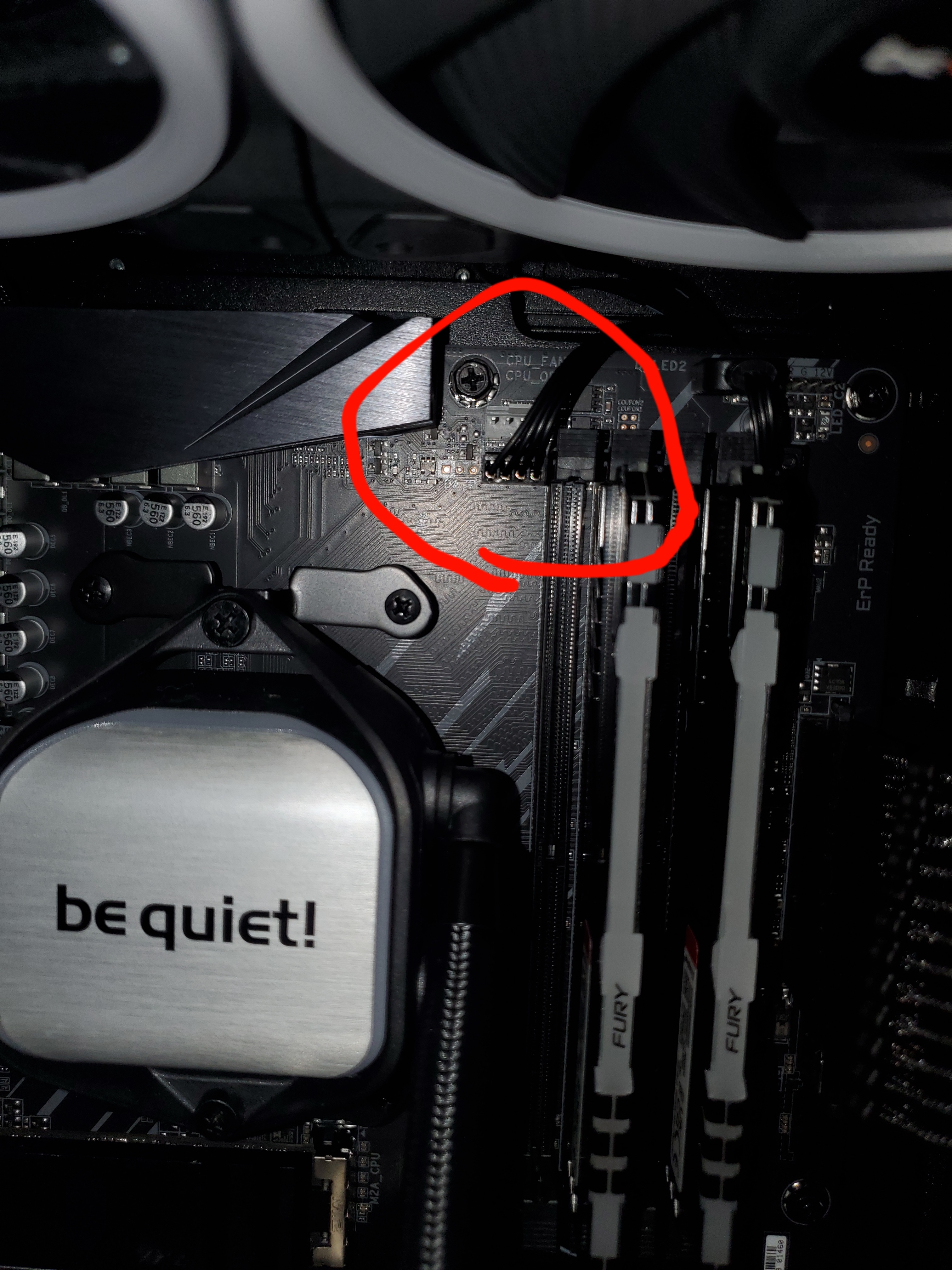 Vermutlich hat die CPU keinen Kontakt oder die Pumpe pumpt nicht, weil sie nicht dreht oder weil sie nichts zum Pumpen im Kreislauf hat.