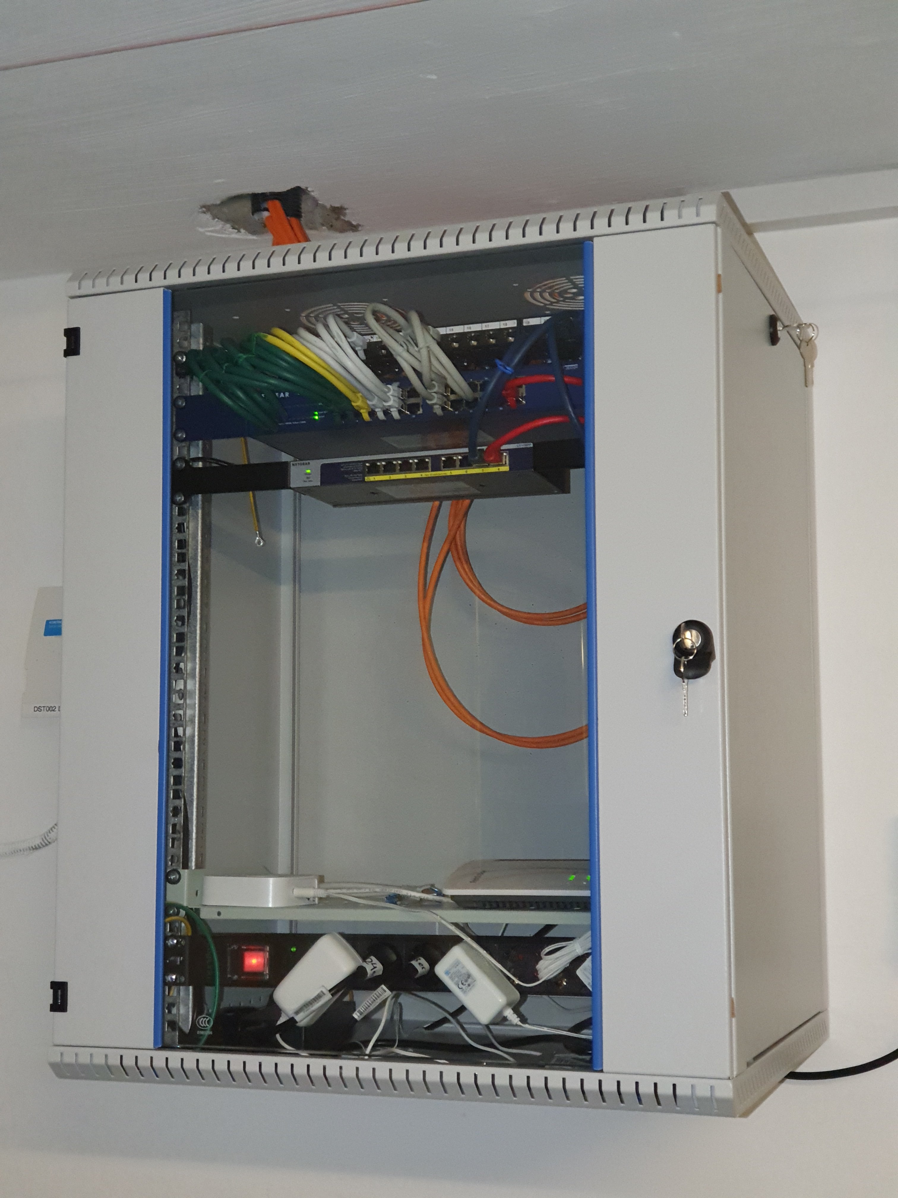 Aufgrund von nicht ausreichenden Kabellängen, benötige ich nun ein „zwischengeschaltetes“ Switch. Dieses soll das Signal an den Anbau weiterleiten. Um es genauer zu sagen: Ich habe bei den Verlegekabeln (Duplex) nicht ausreichende Kabellängen gewählt und zudem ist eine weitere LAN-Dose, ein AP und mögliche Kameras hinzugekommen, die ich vorher nicht bedacht habe. Zwischen dem Netzwerkschrank und dem „neuen Switch" liegen ca. 20 m Kabelstrecke. Jetzt muss eine Lösung her.