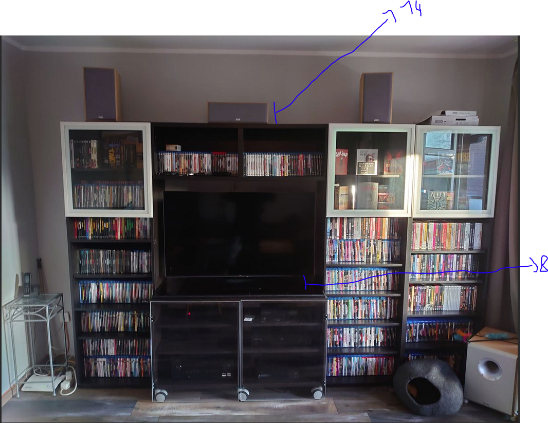 Da mein Wohnzimmer nur eine begrenzte Konstelation zulässt wollte ich fragen ob jemand ähnliche Aufstellung hat und mir sagen kann ob ein 3-D Effekt überhaupt zustande kommt.