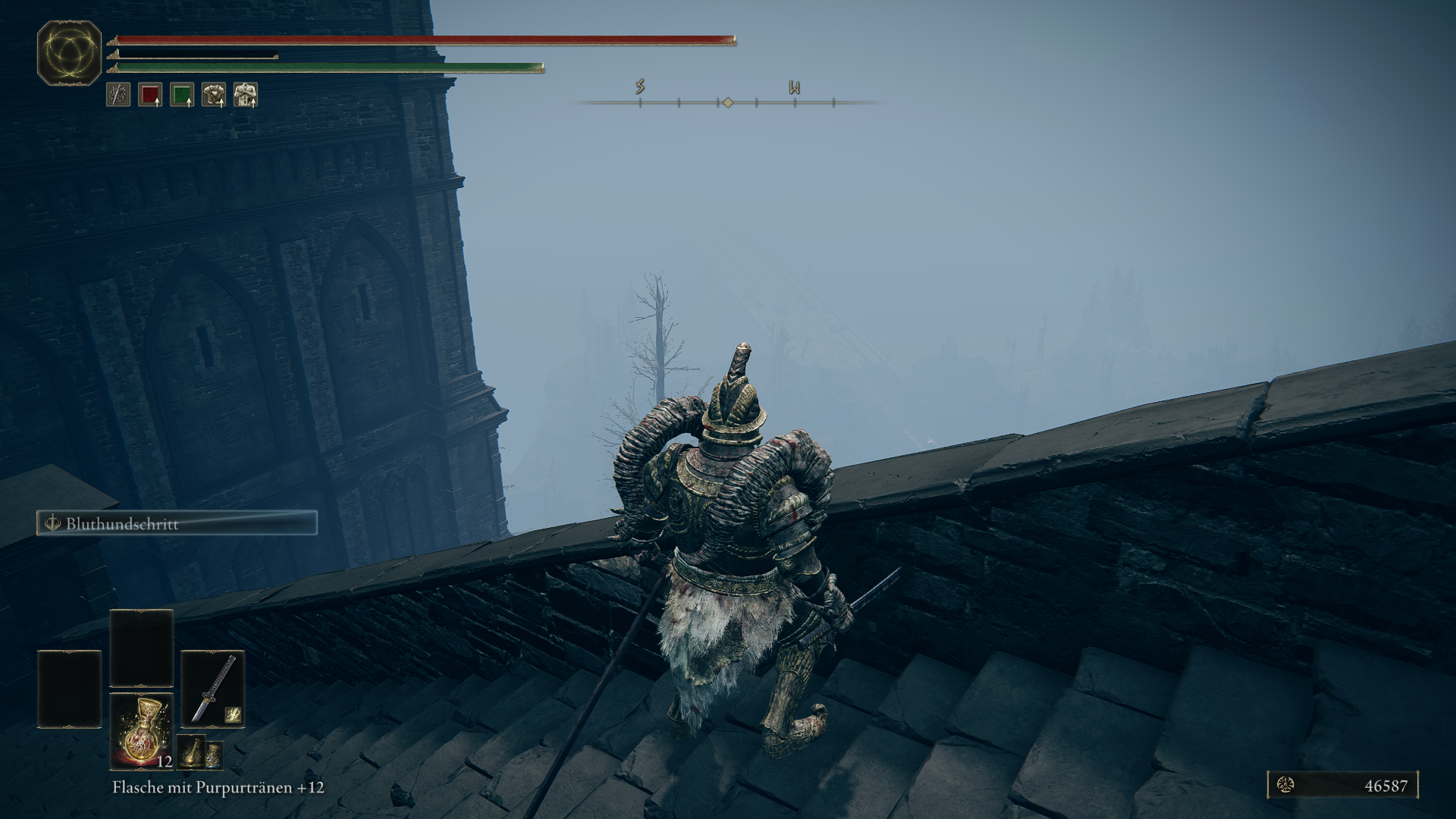 Die Aussicht auf dem folgenden Bild, ich frag mich wer bei From Software dachte es wäre eine gute Idee so einen "Nebel" an dieser Stelle zu setzen, es ist noch nicht mal ein richtiger Nebel, es ist einfach Blau.
