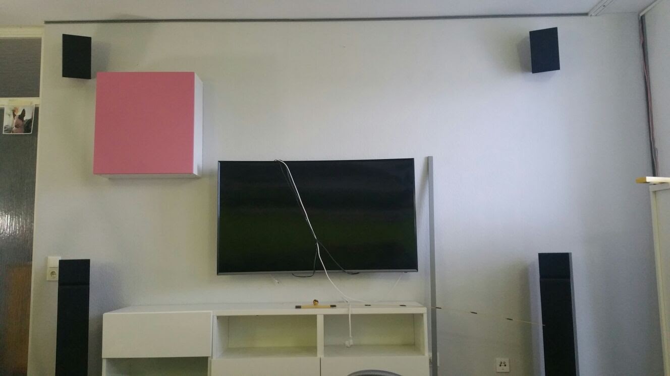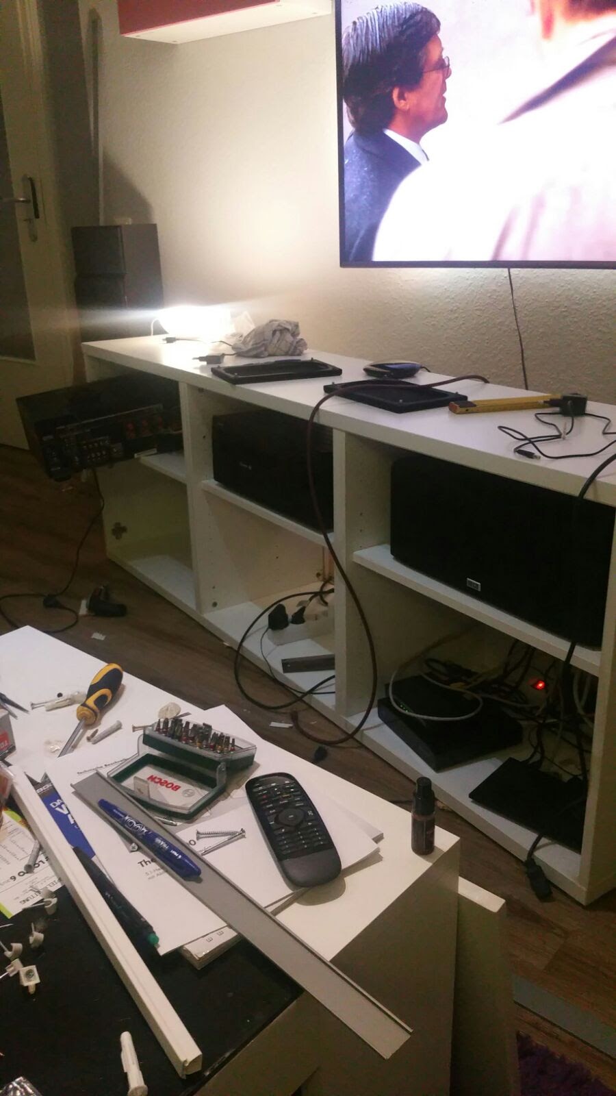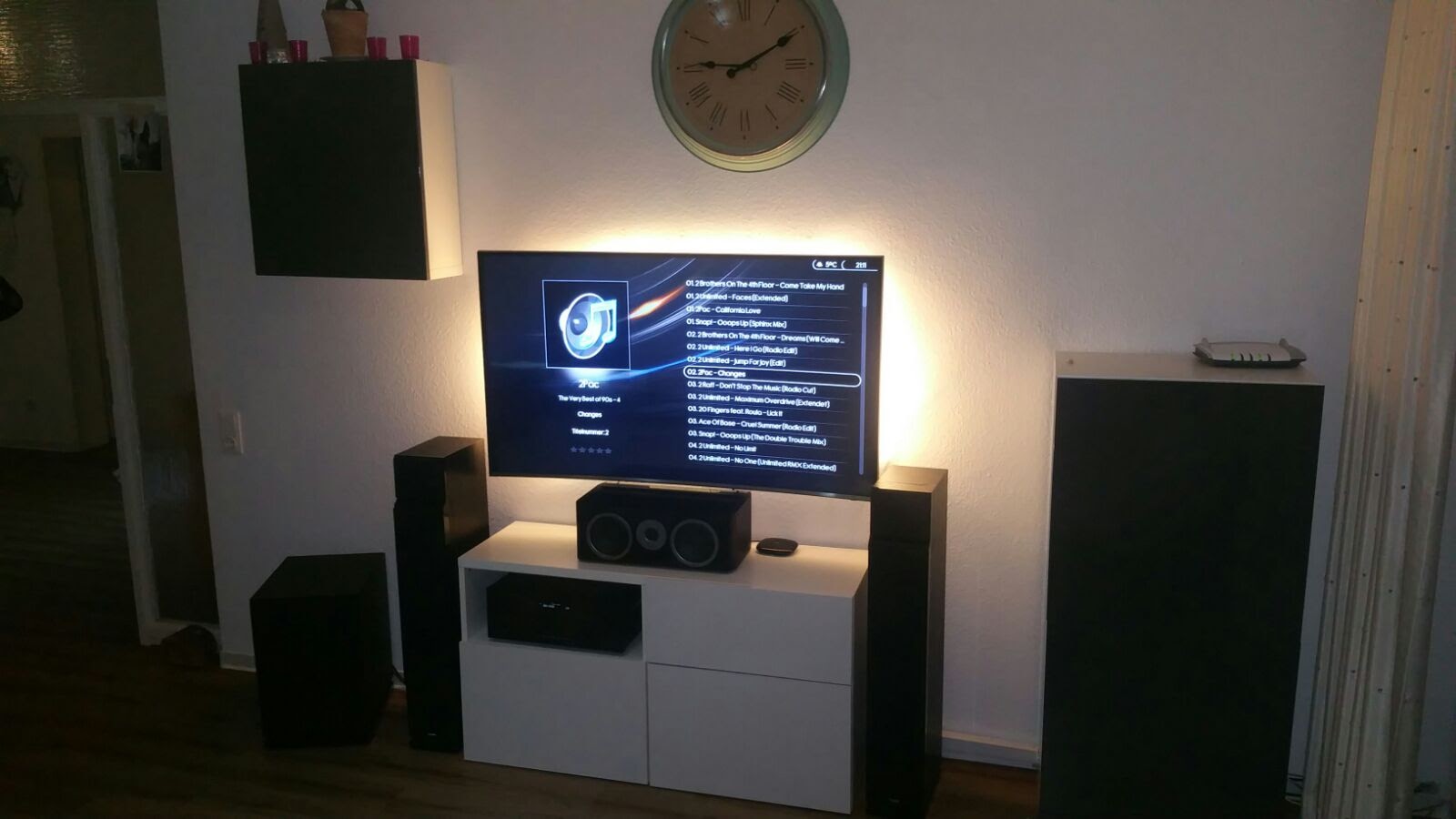 Der Center ist etwas hoch, unterm TV hätte nicht funktioniert und in der Mitte sah es echt sche... aus. Vom Hörgefühl her war ich sogar überrascht, dass es eingentlich gar nicht so sehr aufgefallen ist.