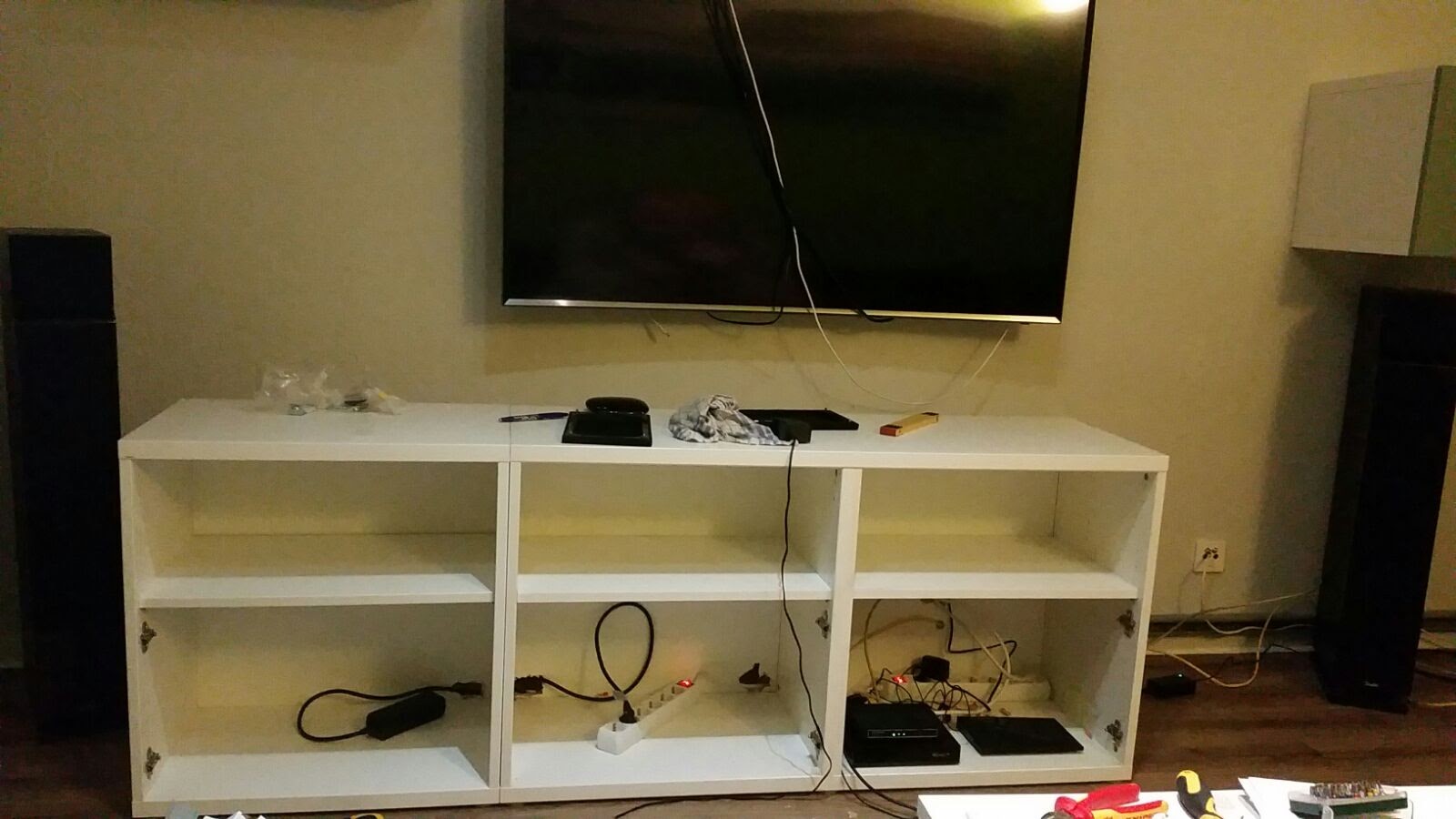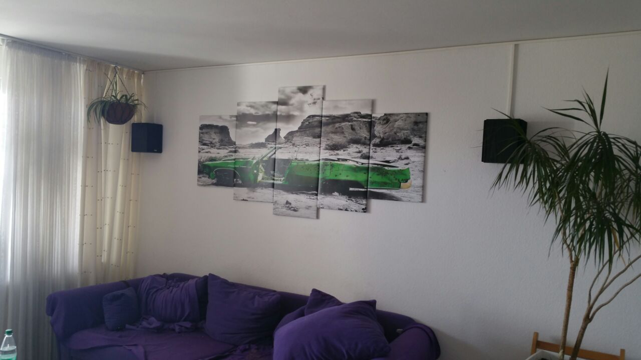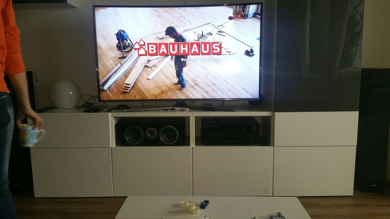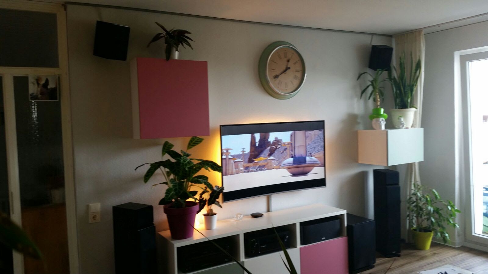 Der Center ist etwas hoch, unterm TV hätte nicht funktioniert und in der Mitte sah es echt sche... aus. Vom Hörgefühl her war ich sogar überrascht, dass es eingentlich gar nicht so sehr aufgefallen ist.
