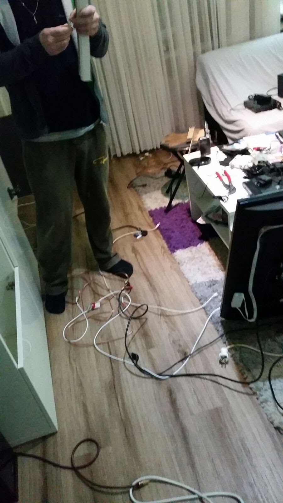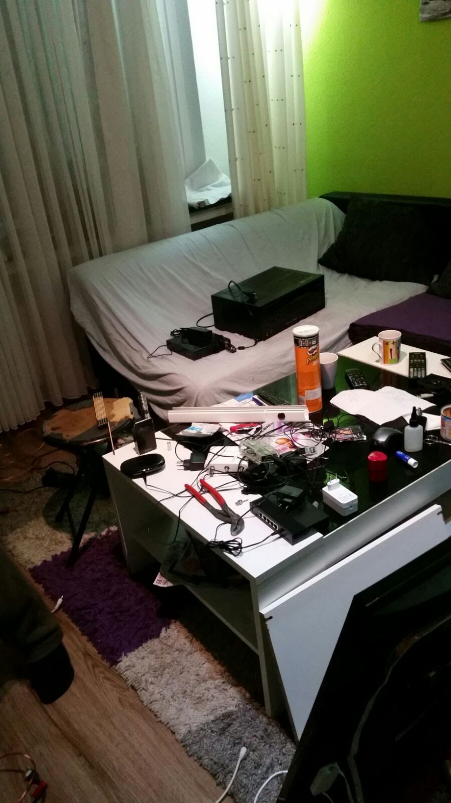 Der Bluray-Player ist ein herkömmlicher DVD-Player und hat nicht einmal die halbe Tiefe des AVR, deswegen kann ich ihn nicht drunter stellen. Mal abgesehen davon, ist er dann komplett hinterm Holz und reagiert auf die FB nicht mehr.