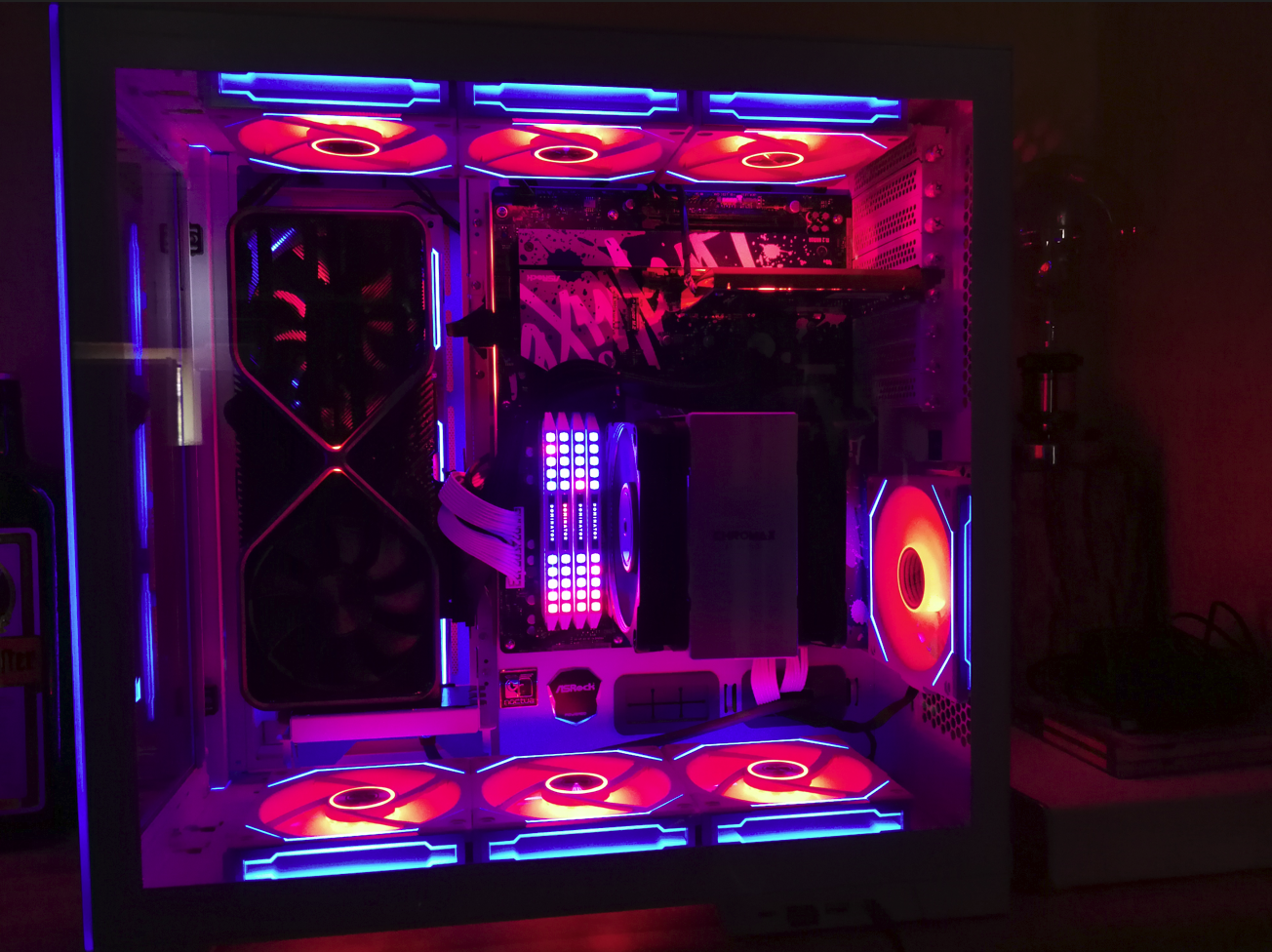 Da wir uns am Anfang noch nicht festgelegt hatten was alles im neuen System verbaut werden sollte, gab es erst mal "nur" 10x neue Lian Li UNI-FAN SL Lüfter wo dann die alte Hardware erst mal einzog.