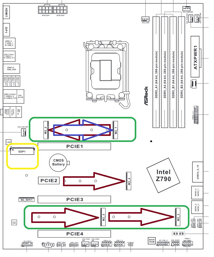 Ein recht interessantes Board mit tollen Featuren! 23 USB Ports... dazu eDP-Signalanschluss wo man wohl gleich einen Bildschirm intern dort an diesem Anschluss betreiben könnte. 4x NVMe 4.0 können verbaut werden. 3x unter Mainboard Verkleidung/Kühlblechen und einer würde selber einen Kühler benötigen oder 1x NVMe 5.0 und 3x 4.0 geht auch. Unter dem obersten Kühlblech kann man sowohl 4.0 wie auch 5.0 betreiben. Es gibt 2 gegenüber liegende Ports. Laut YT Video könnte man auch beide gleichzeitig betreiben wenn man die Schrauben weg lässt aber ich glaube thermisch würde da so ziemlich alles gegen sprechen wenn man da zwei NVME direkt übereinander betreiben würde. Aber interessante Technik!
